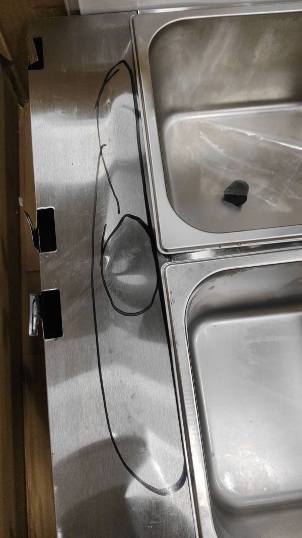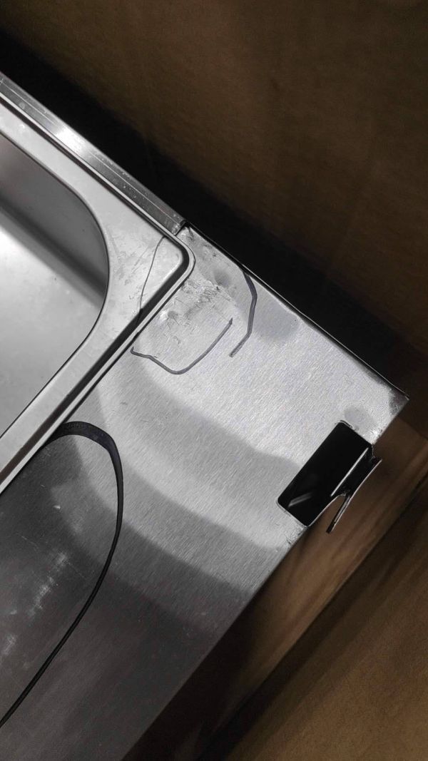 外観のステンレス部分に複数のへこみが見られます。使用には支障ありませんが、見た目を気にされる方はご注意ください。