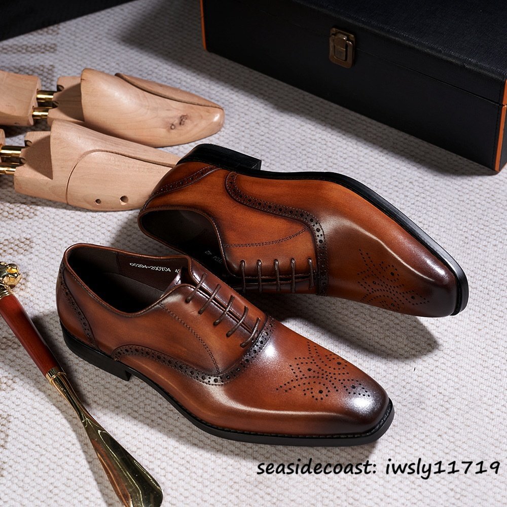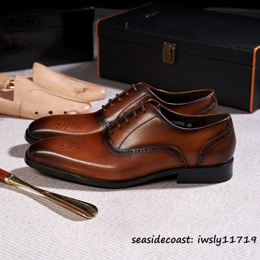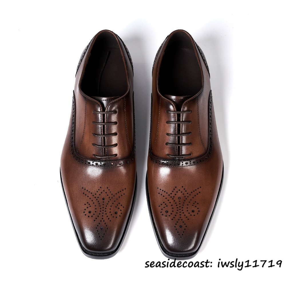 入手困難★定価9万 新品 本革 レザーシューズ 紳士靴 ビジネスシューズ 職人手作り 彫り 超希少 高級牛革 革靴 フォーマル ブラウン 26.0cm