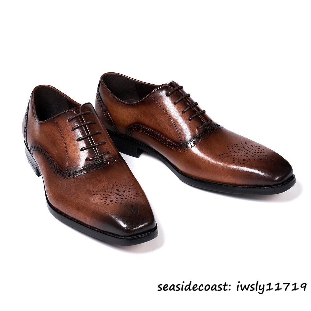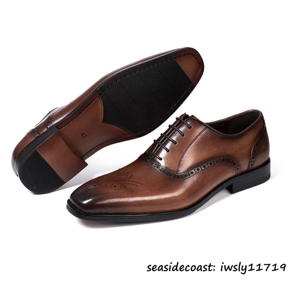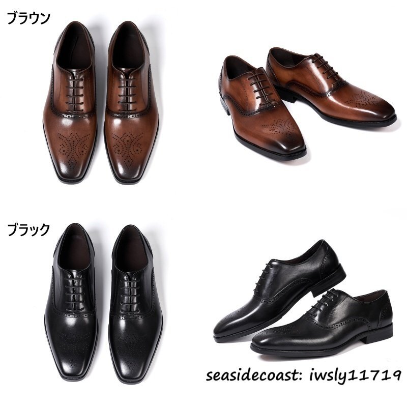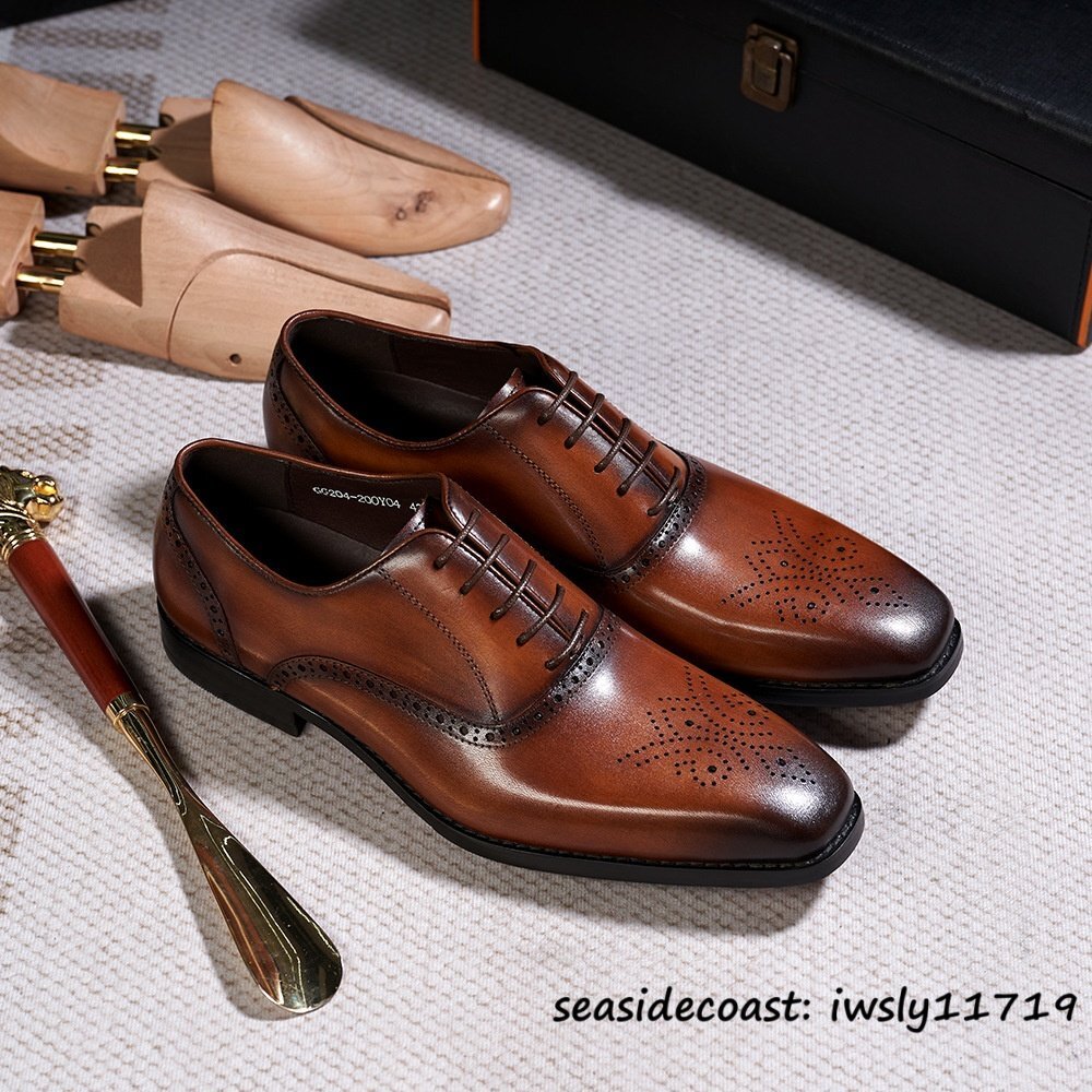 入手困難★定価9万 新品 本革 レザーシューズ 紳士靴 ビジネスシューズ 職人手作り 彫り 超希少 高級牛革 革靴 フォーマル ブラウン 26.0cm