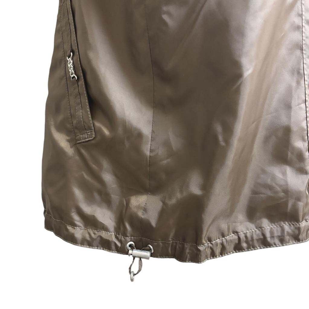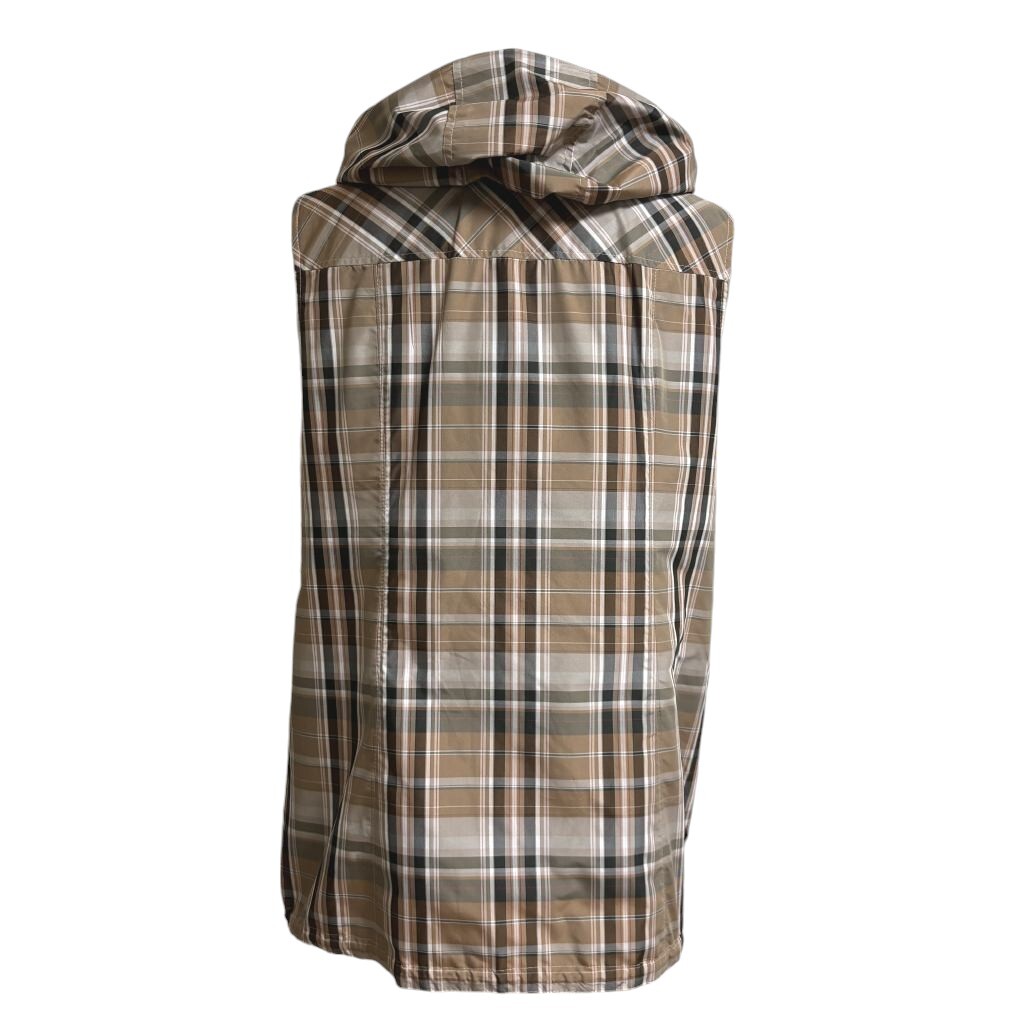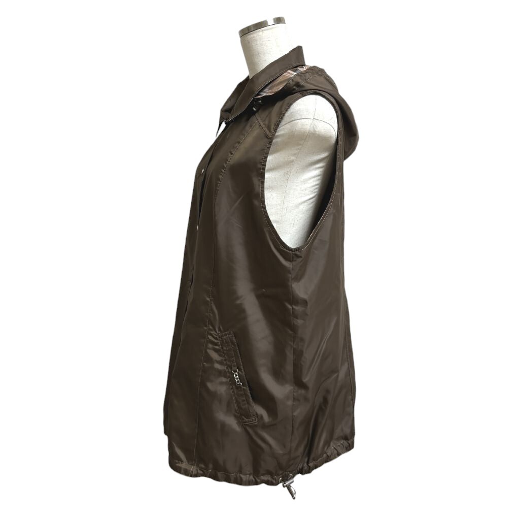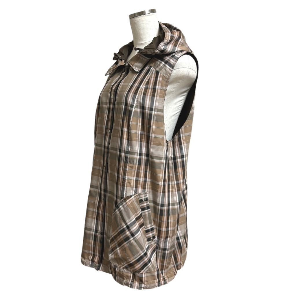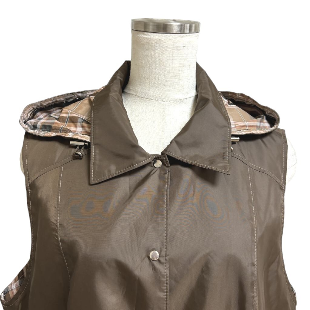 Leilian(レリアン)のレディース用ナイロンベストです。サイズは13号(LL)、ブラウンを基調にしたチェック柄が特徴的で、リバーシブル仕様となっています。撥水加工が施されており、軽量ながら雨の日でも安心して着用できる実用性の高い一着です。フード付きのデザインで、カジュアルなスタイルにぴったり。リバーシブルにより、チェック柄と無地の両方を楽しむことができ、コーディネートの幅が広がります。状態は非常に良好で、目立つ使用感はなく、汚れや傷も見当たりません。機能性とデザイン性を兼ね備えた、美品のナイロンベストです。秋のアウターとして活躍すること間違いなしです。前はファスナーとスナップボタンの2重式になっています。フードは取り外し可能。春、夏、秋にお使いいただけます。ポケットあり。◆サイズ◆13号 肩幅37 バスト110 着丈70◆素材◆画像参照