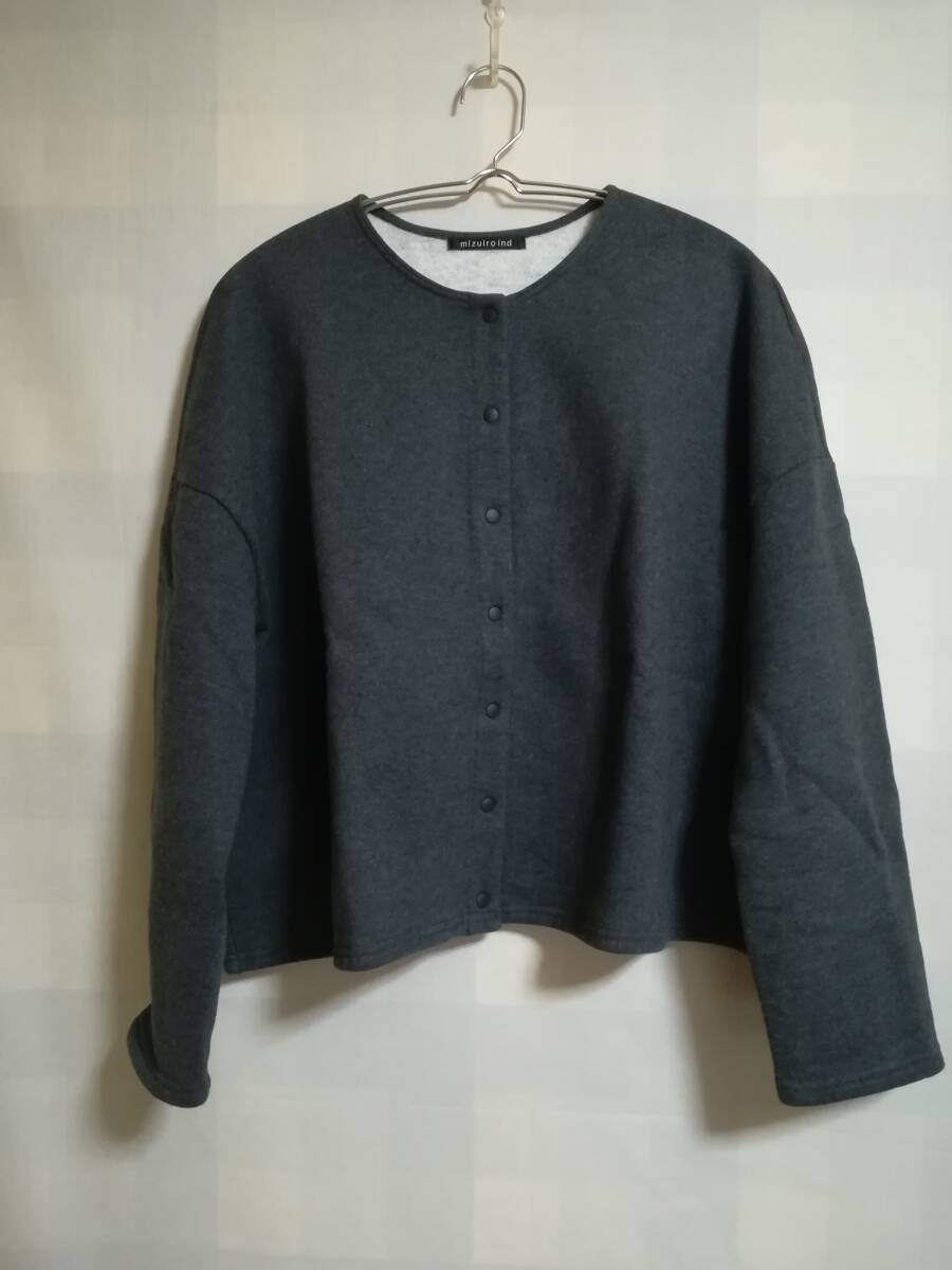 mizuiroind 22AW クルーネックショートワイドカーディガン チャコールグレー