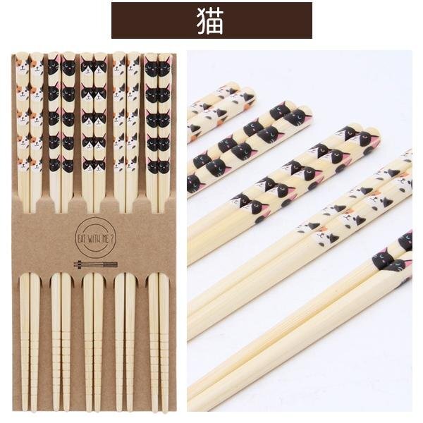 箸 ねこ 5膳セット おしゃれ 20.5cm 大人 子供 来客 家族 5人分 持ちやすい 天然木 景品 日用品 送料無料 1M◇ 箸5本セット:猫