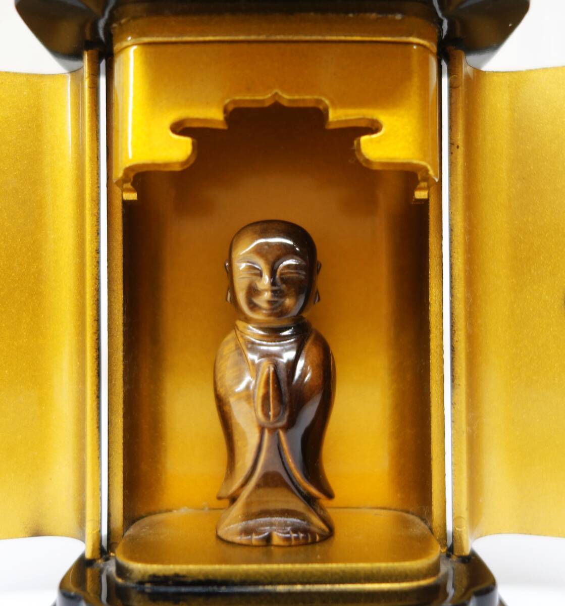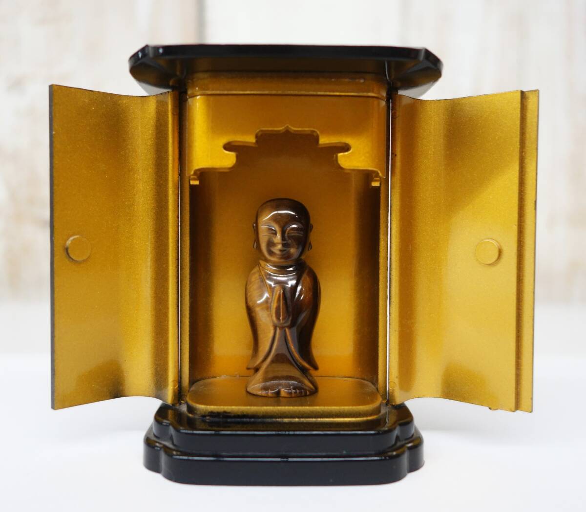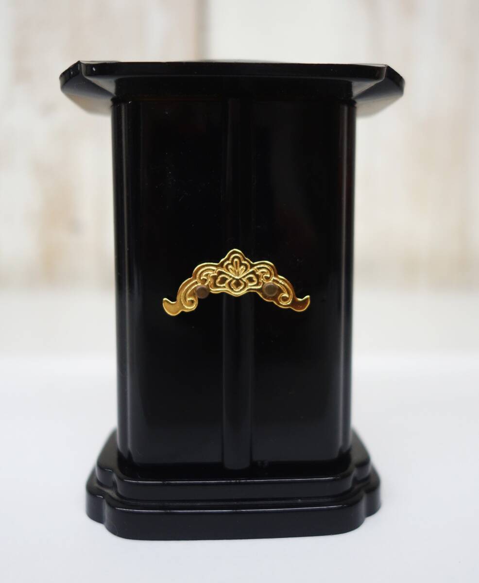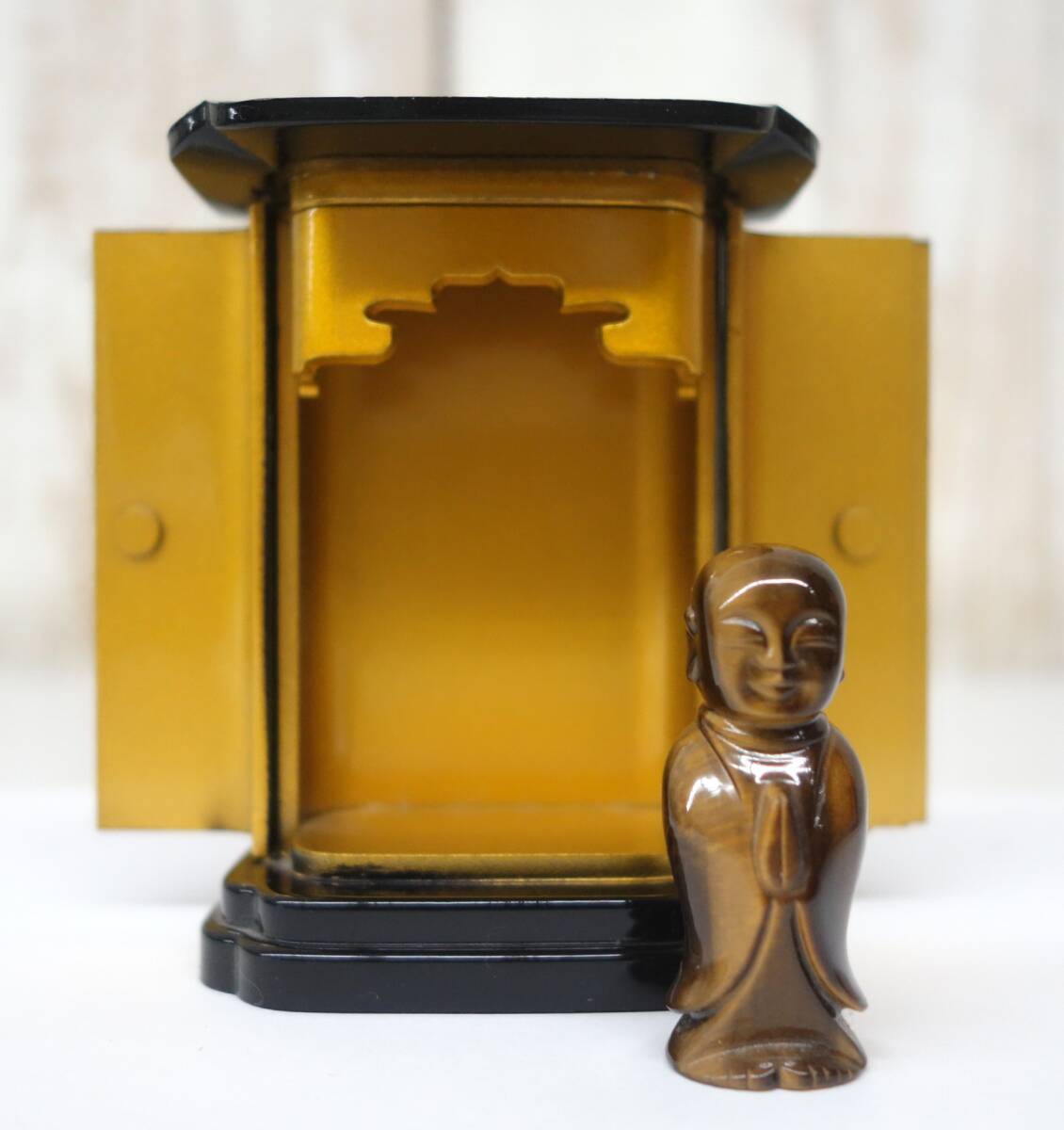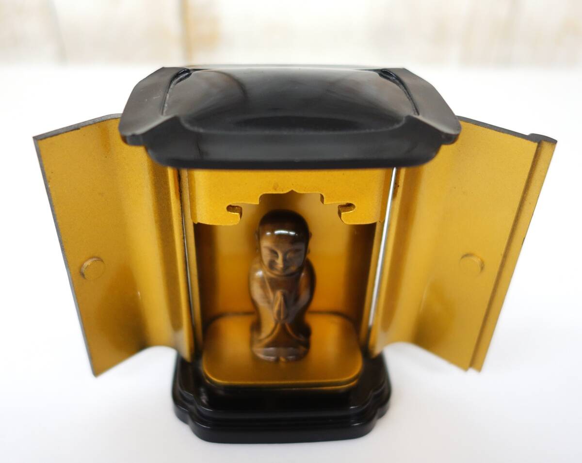 *伝統工芸 工芸美術 レトロ 小型仏具 仏壇 仏具 *厨子型 ミニ仏壇 地蔵菩薩 地蔵尊 付属 *厨子 黒色 内金 金色金具 *地蔵尊 マーブル色 |