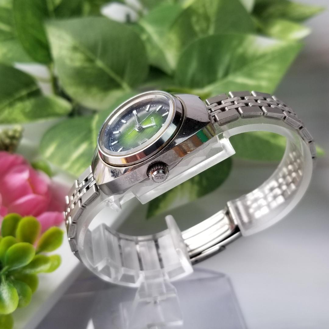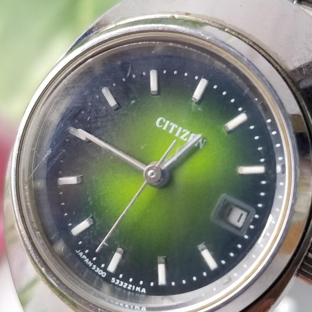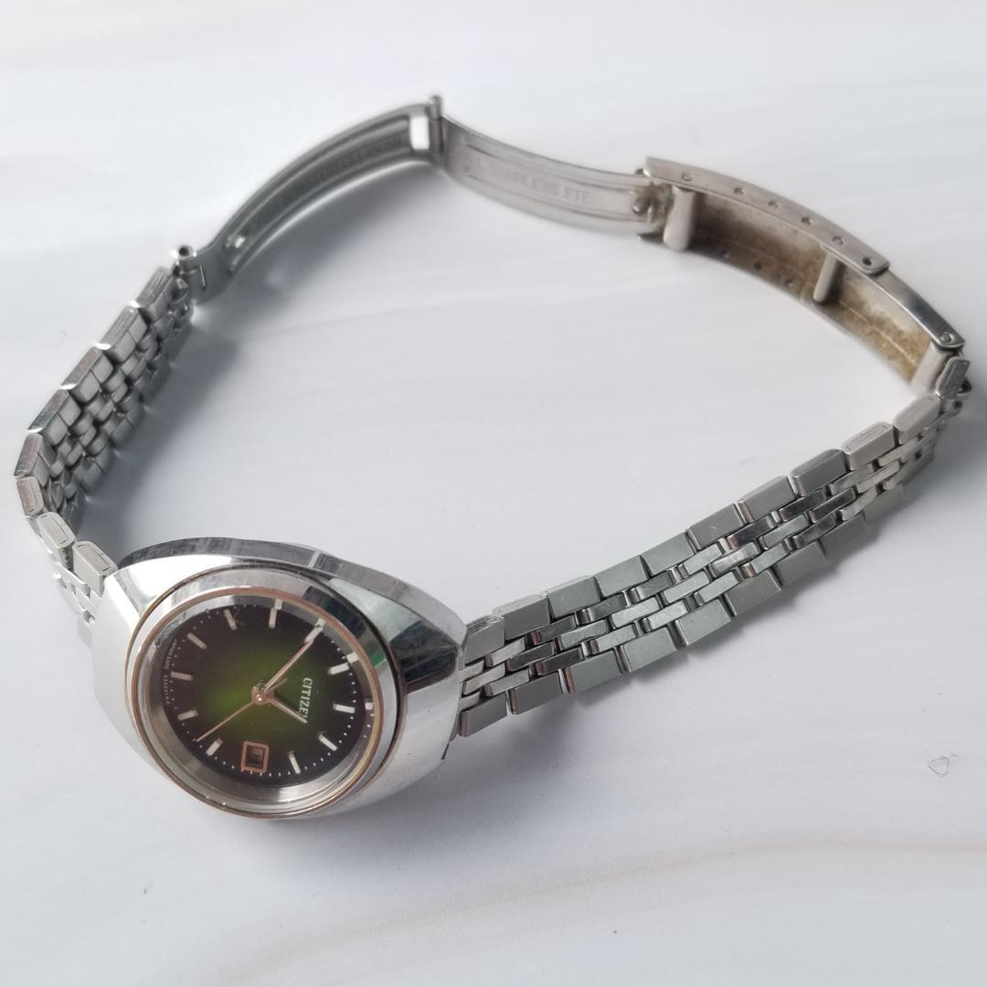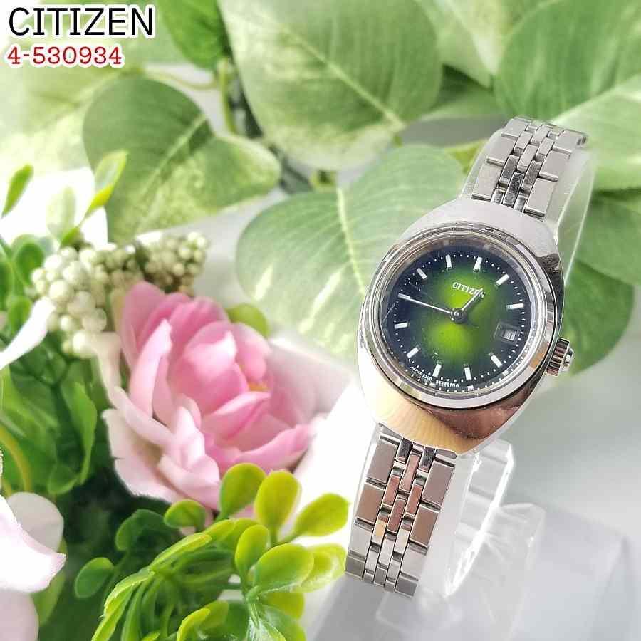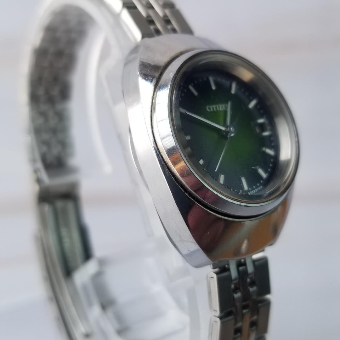 【稼働品】シチズン 手巻 4-530934 純正ブレス グリーン CITIZEN レディース 機械式 腕時計 ウォッチ【758】