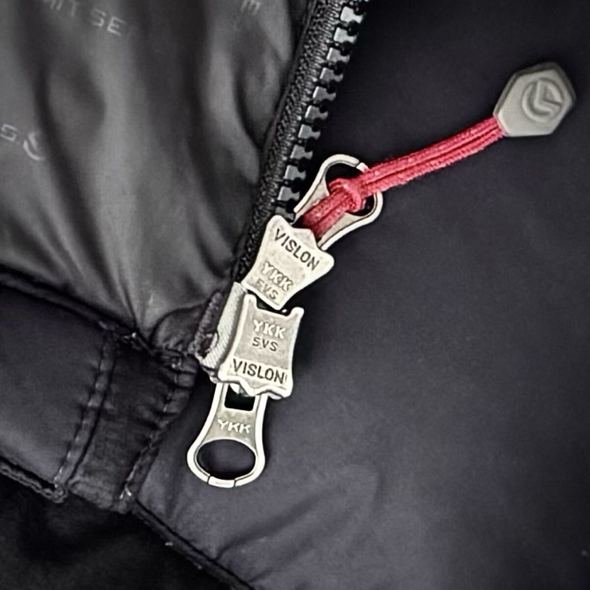 ファスナーは上下開閉可能なダブル仕様で、YKKの中でも高品位なVISLONを採用。
