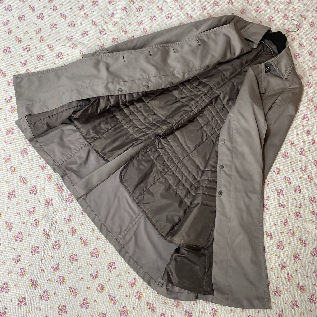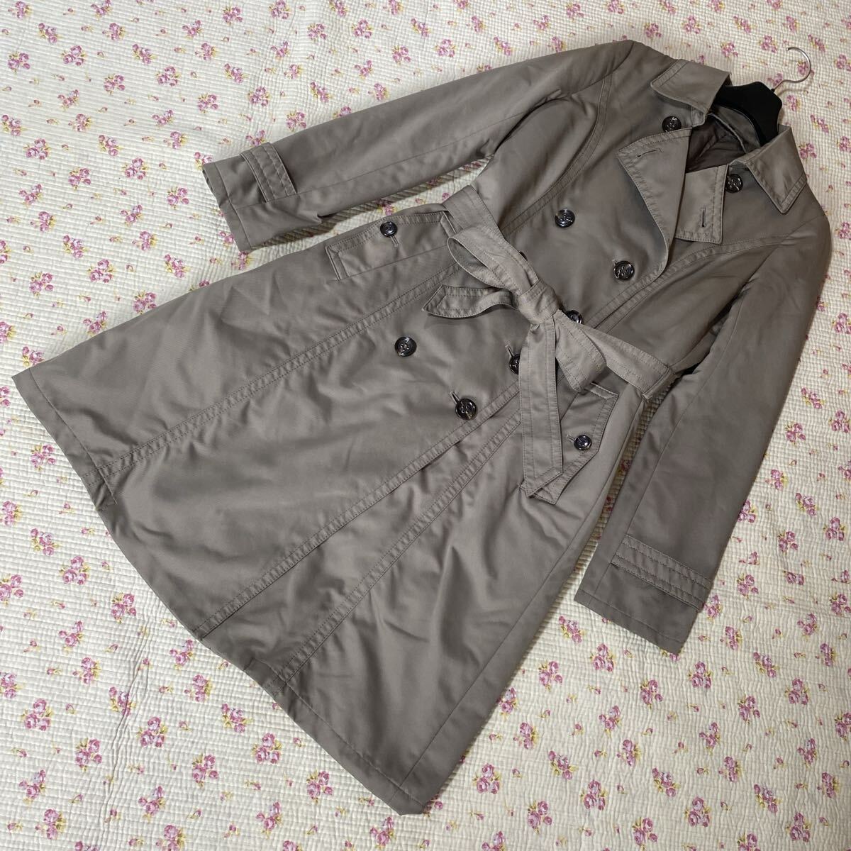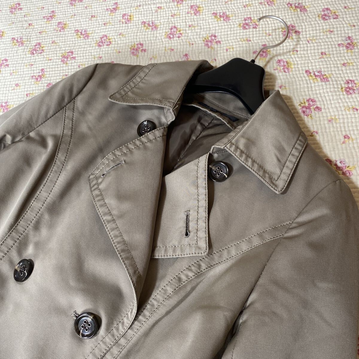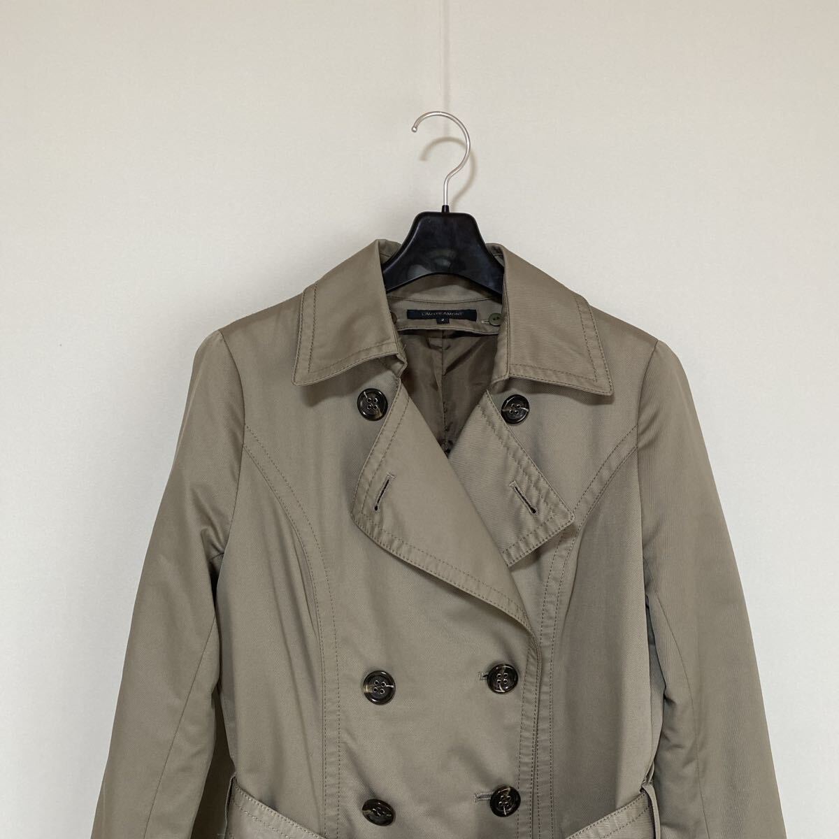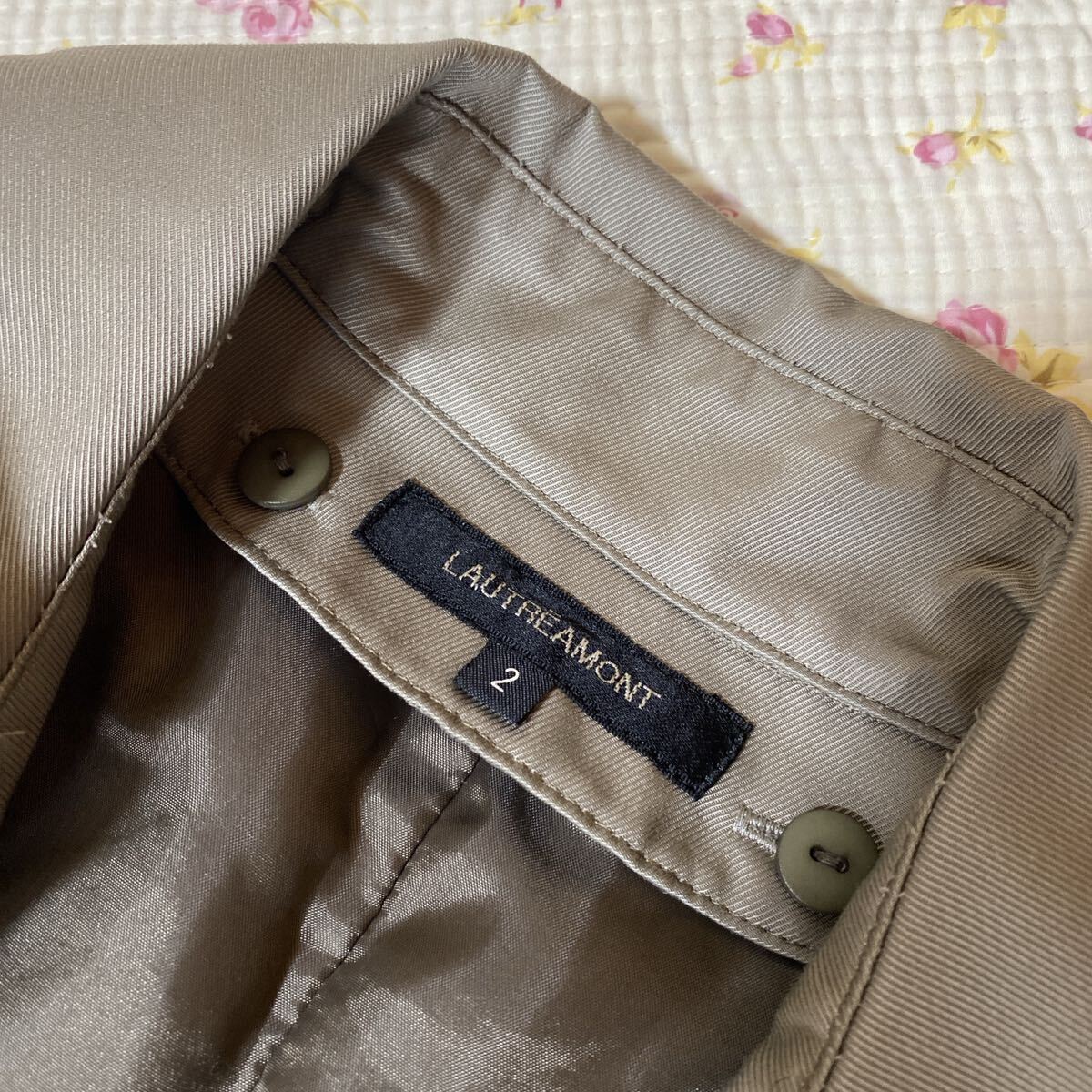 ロートレアモン(LAUTREAMONT)のお品です。程良く、ハリ感のあるトレンチコート。着脱可能なライナー付き(ダウン×フェザー)で、肌寒い時期から春先、秋口まで、気温に合わせて調整でき、長い期間着用できます。撥水性や防シワ性に優れた素材が使用されており、機能性と見た目の両方を重視している事もポイントです。お色は画像でご確認ください。カーキ系です。(^^♪ 画像に実際のお色が良く出ています。ベーシックなベージュやネイビーとは異なり、程よいカジュアル感とこなれ感を演出できるのが魅力です。フロントはボタンが5個(1つは内側)付いています。ポケット、外両サイド×2。内ポケット×0。ライナー付きです。スリットあり(背面、約33センチ)。クリーニング済み。付属品:ベルト