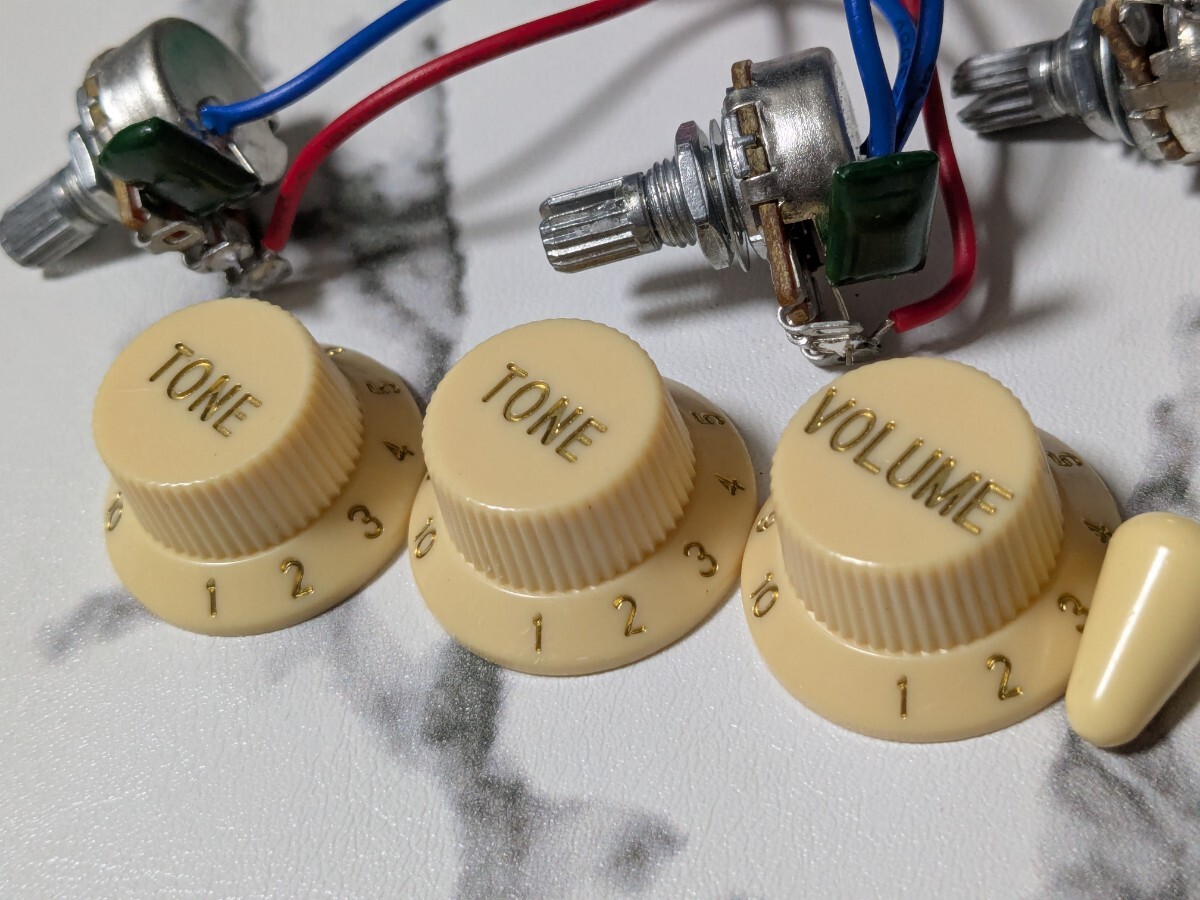 500kポッドは250kと比較して高音域が抑えられ難いのでハムバッカーに合わせられますが、シングルに使うのも問題ありません。