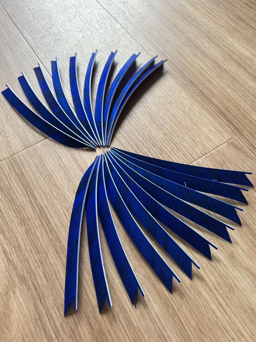 羽根自体がやや曲がる状態ですので、貼る時にアーチェリーのフレッチャーが推奨です。