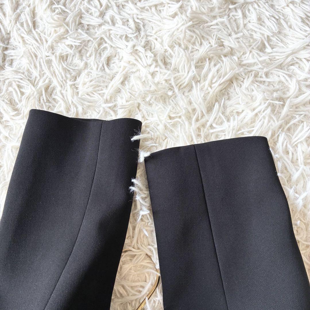 程よいフィットでウエストが絞られたAラインのシルエットです。