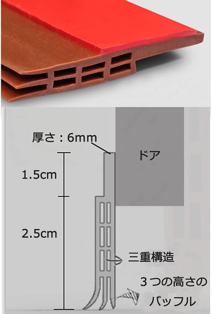 サイズ: 1本の長さ:1m 高さ:4cm 厚さ:6mm 【高品質シリコーン素材】このドア下部すきまテープは無味無臭、防水である環境に優しい高品質シリコーンを採用、優れた弾力と自然回復性があって、長く使えます。