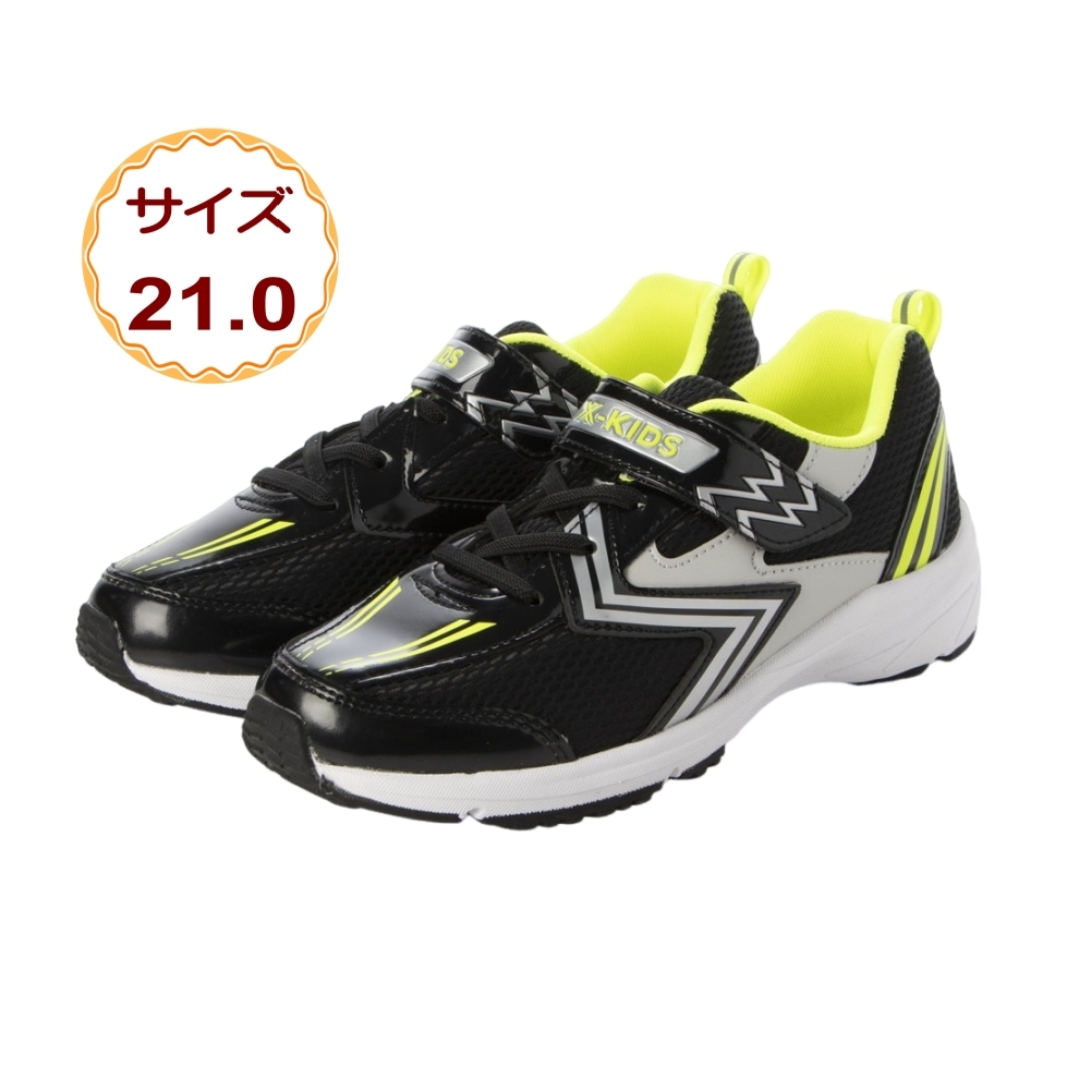キッズ ジュニア スニーカー 子供 運動靴 通学靴 ランニング シューズ 抗菌 防臭 超軽量 防滑底 男の子 ブラック 黒 24868-blk-210 21.0cm