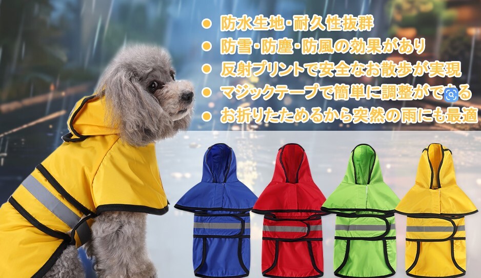 新品 大幅値下げ 犬レインコート サイズ L 青 ポンチョ型で着せやすい。 かわいい 完全防水