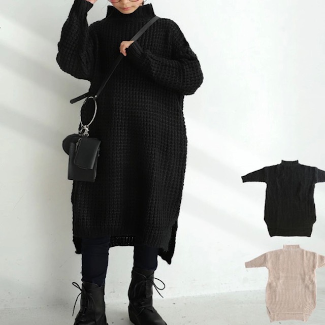 | 新品タグ付き★antiqua アンティカ 『ワッフル編みとざっくり軽いボリューム感が今っぽい。』 ボトルネックニットワンピ キッズ | |