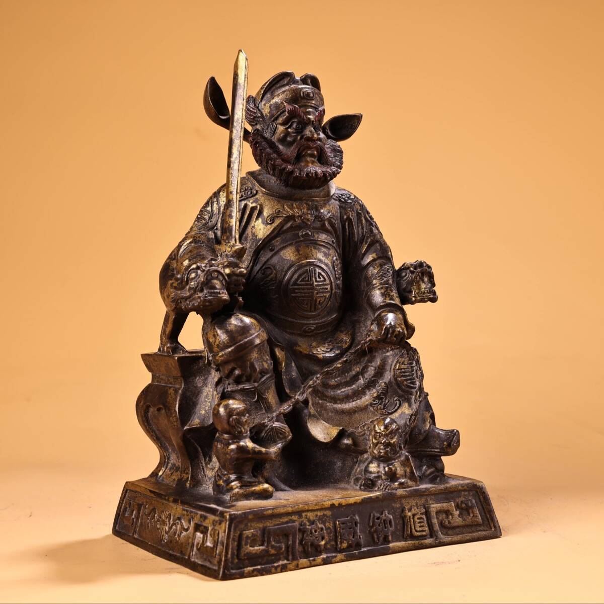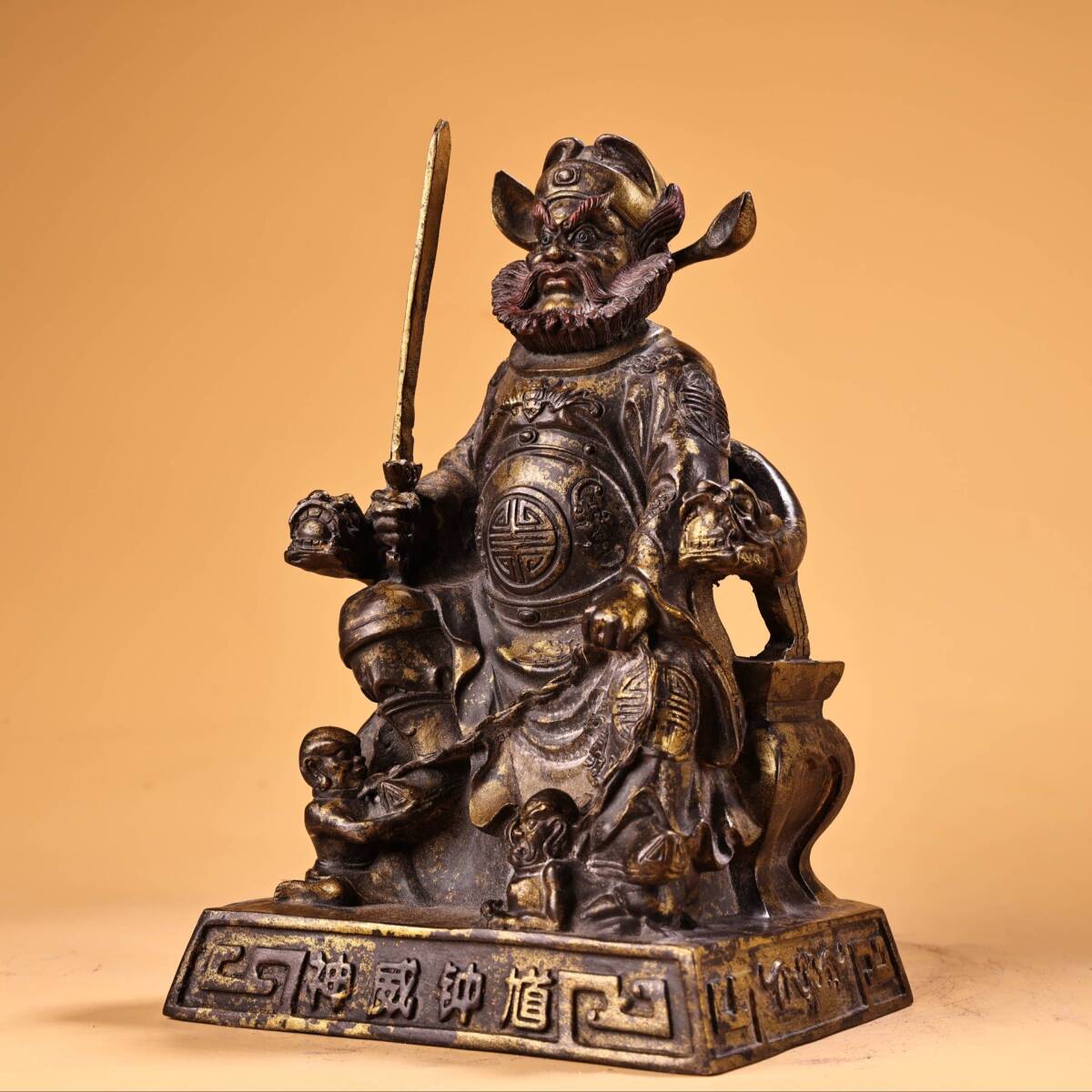 【超珍館蔵】銅製 泥金 坐鐘馗仏 仏像 宗教 仏教古美術 供養品 古賞物 古董品 古美術品 時代物 旧家蔵出 稀少珍蔵品