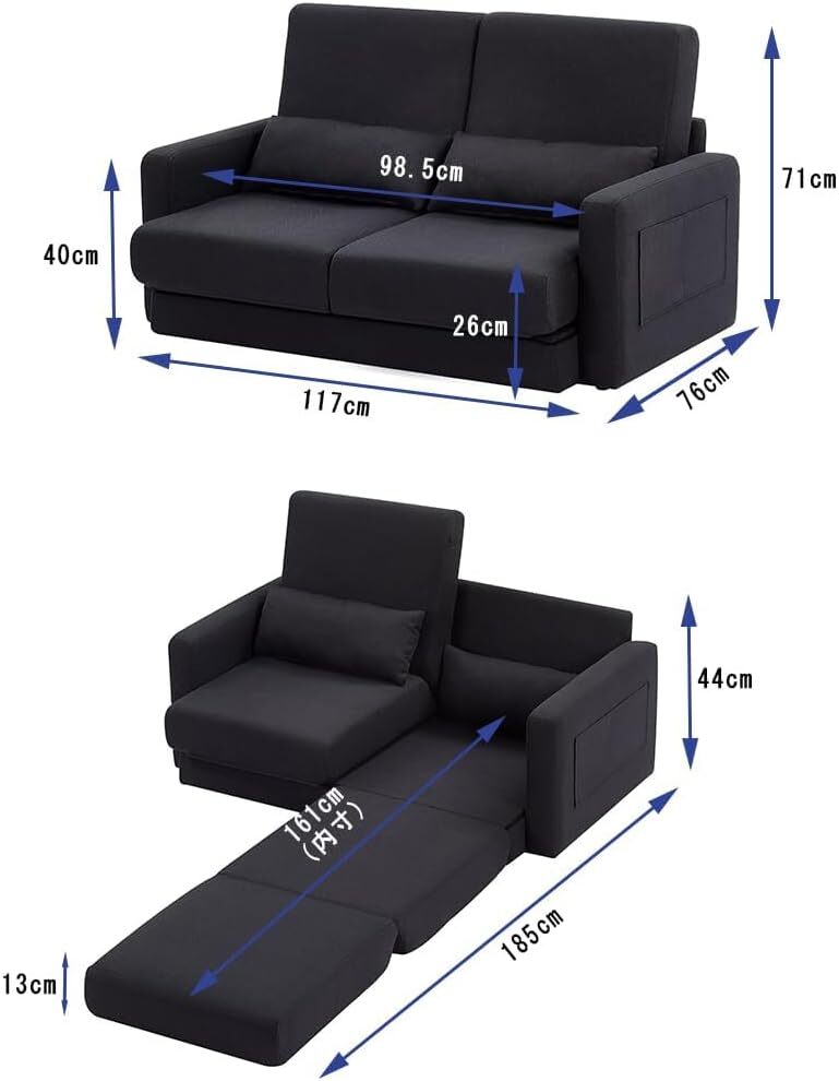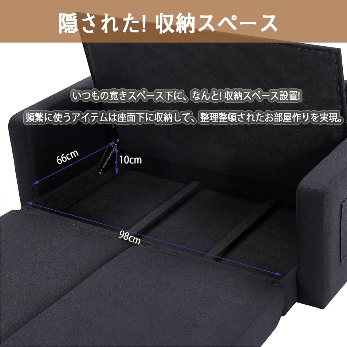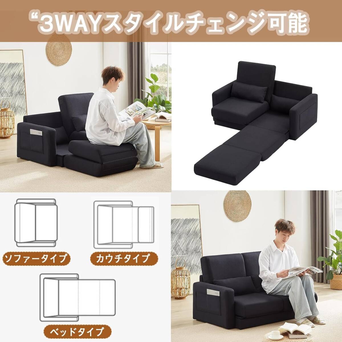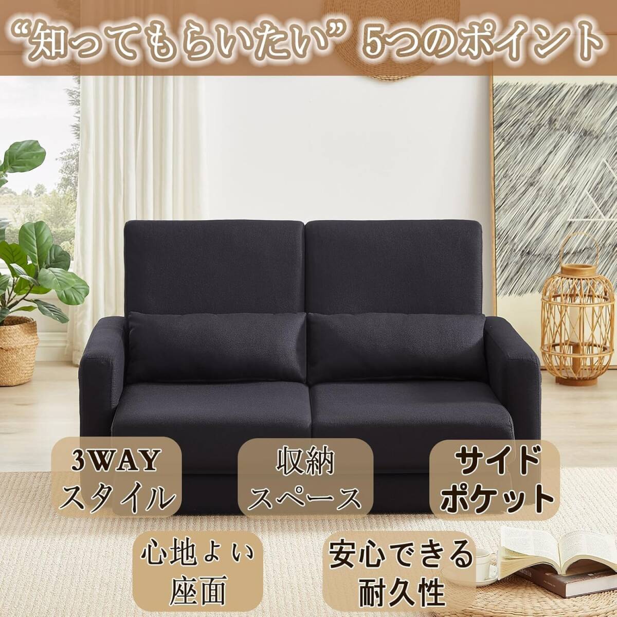 3WAY ソファーベッド 2人掛け 収納付き ベッド 折りたたみ ローソファー ベッド 折りたたみ カウチソファー 一人用 (ブラック・2人掛け)