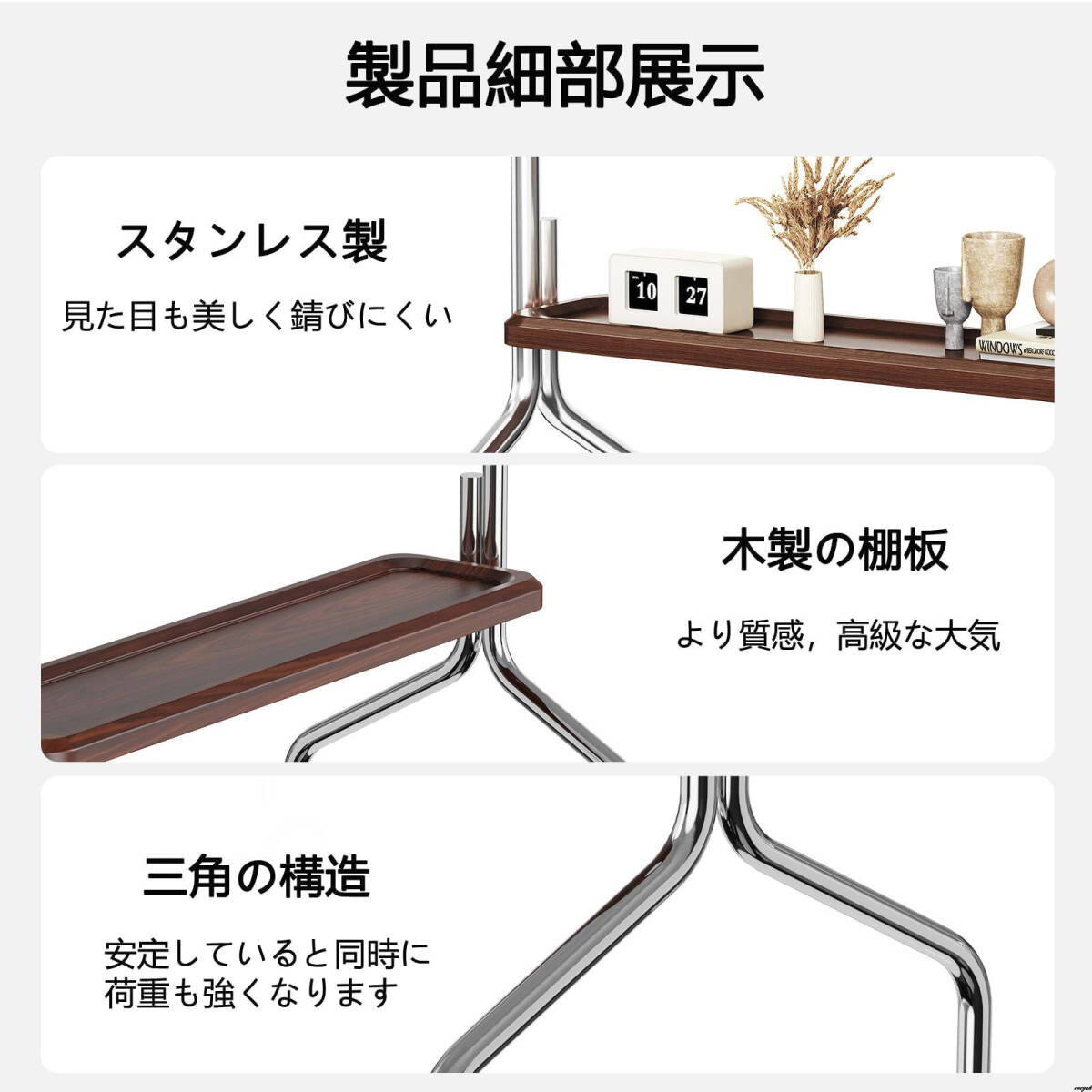 ・本体材質:ステンレス(フレーム)、木製(棚板)