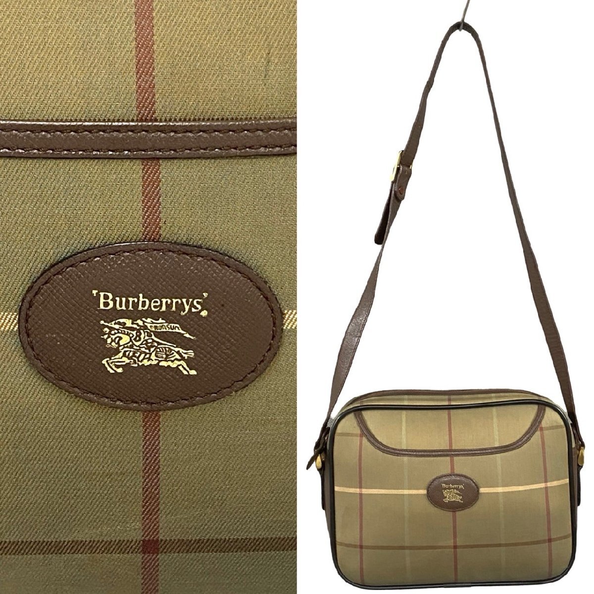 極 美品 希少品 Burberrys バーバリーズ ヴィンテージ ノバチェック レザー 本革 キャンバス ショルダーバッグ ポシェット ブラウン 31568