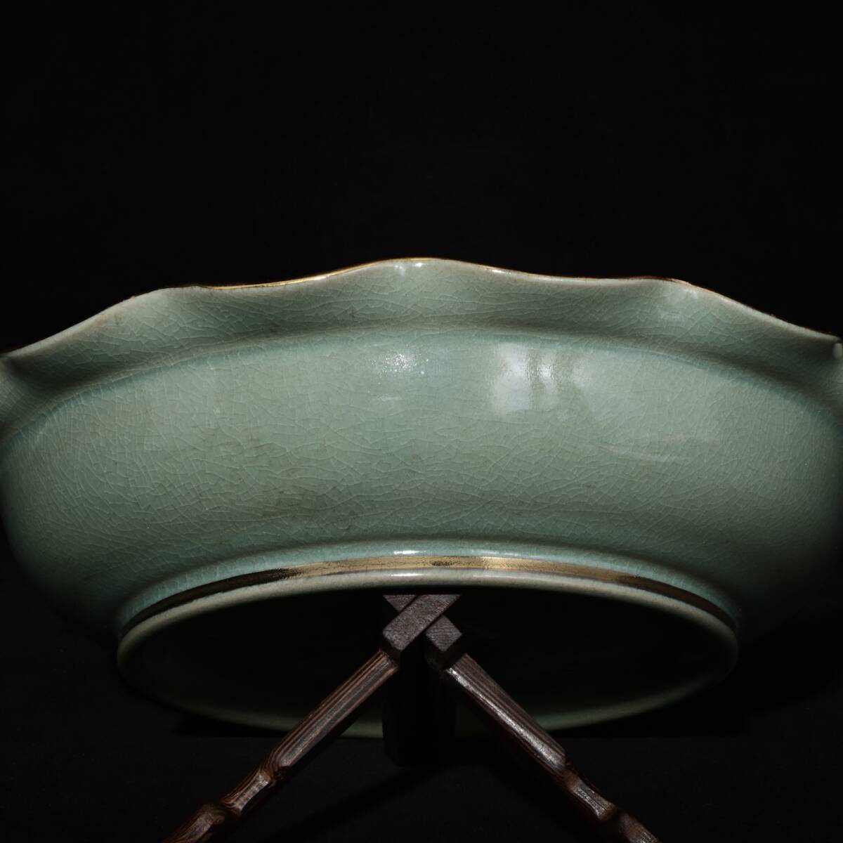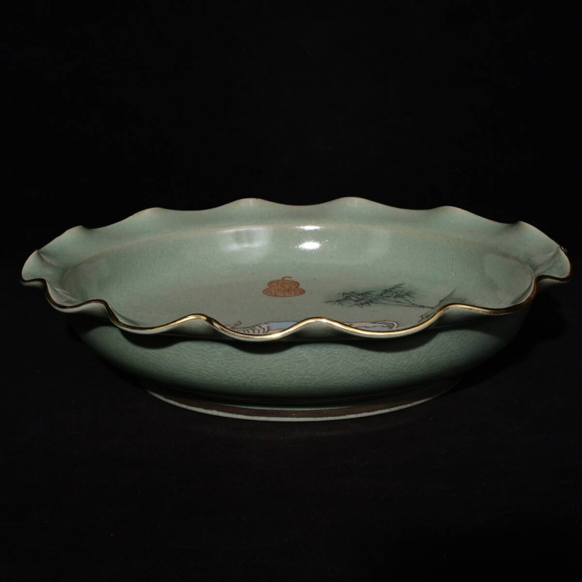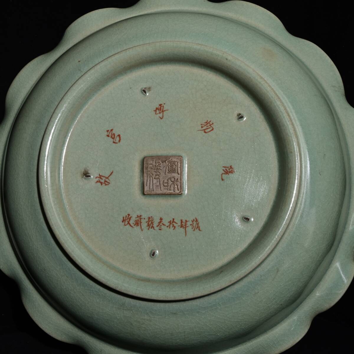 *珍品旧蔵* 宋 汝窯 エナメル彩描金牛紋 賞皿 陶芸 古陶磁器 中国磁器 極細工 唐物 中国古玩 骨董品 古美味 H49
