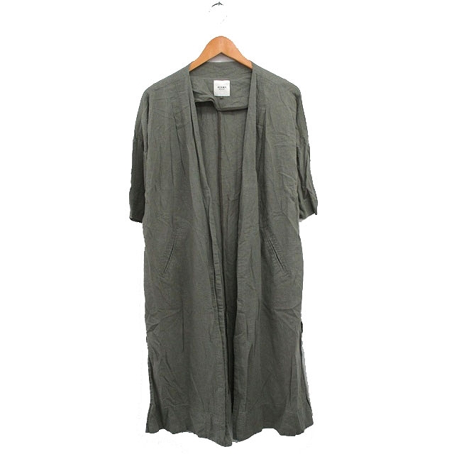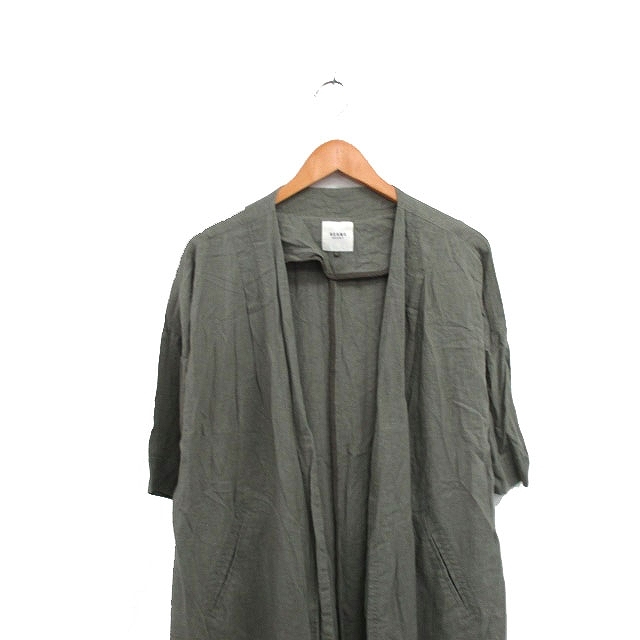ビームスハート BEAMS HEART トッパー コート ロング 七分袖 リネン シンプル カーキ /KT32 レディース