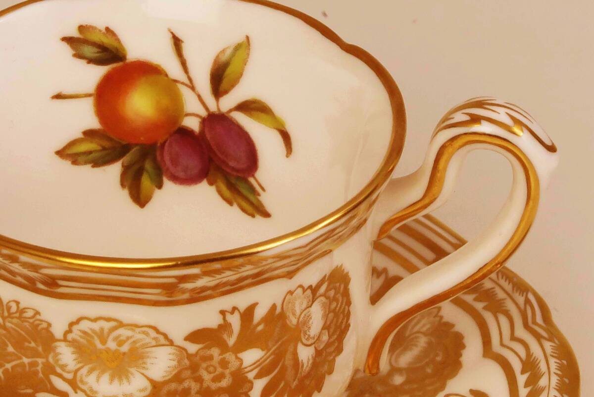 スポード  豪華金彩フルーツ模様・デミ・カップ&ソーサー (一級品)貴重品