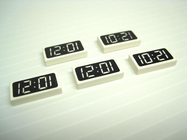 白色の1×2のタイルにデジタル時計がプリントされたユニークなタイルです。