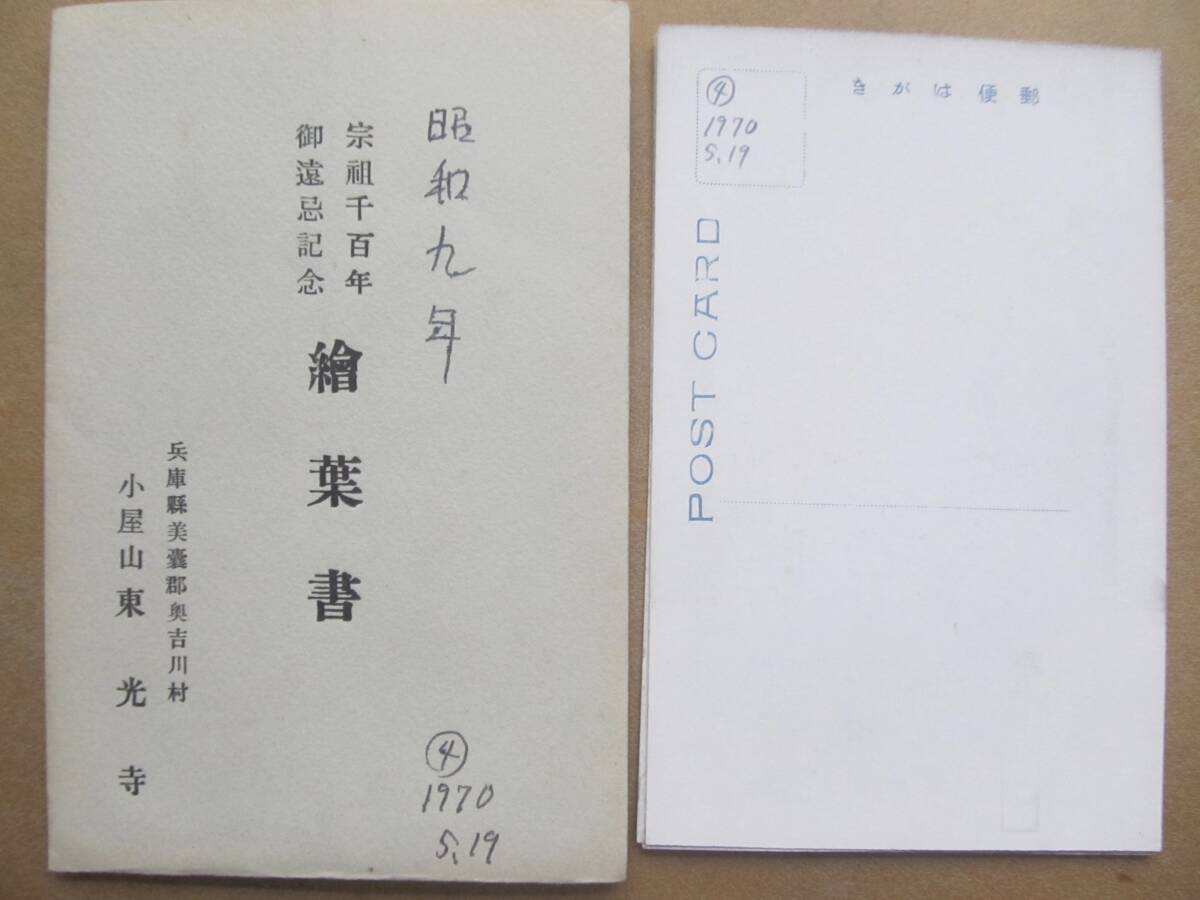 昭9 兵庫【東光寺】宗祖1100年御遠忌 記念繪葉書 4枚,袋