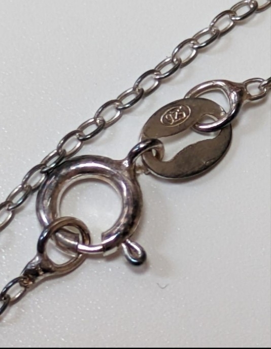 チェーンには925の刻印がありますが、ペンダントトップには刻印のようなものはありましたが何と書いてあるのか読めませんでしたので素材は不明です。
