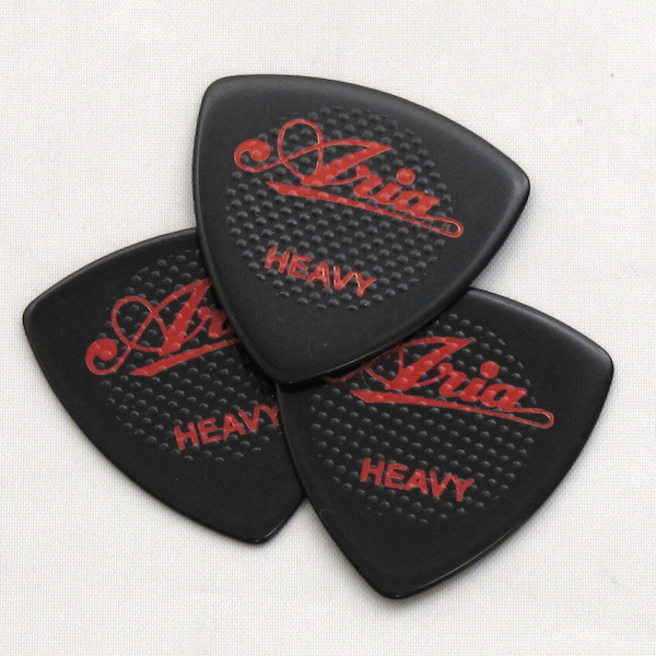 新品 ギターピック3枚セット ラバーグリップ トライアングルシェイプ 黒 HEAVY/1.0mm セルロース Aria