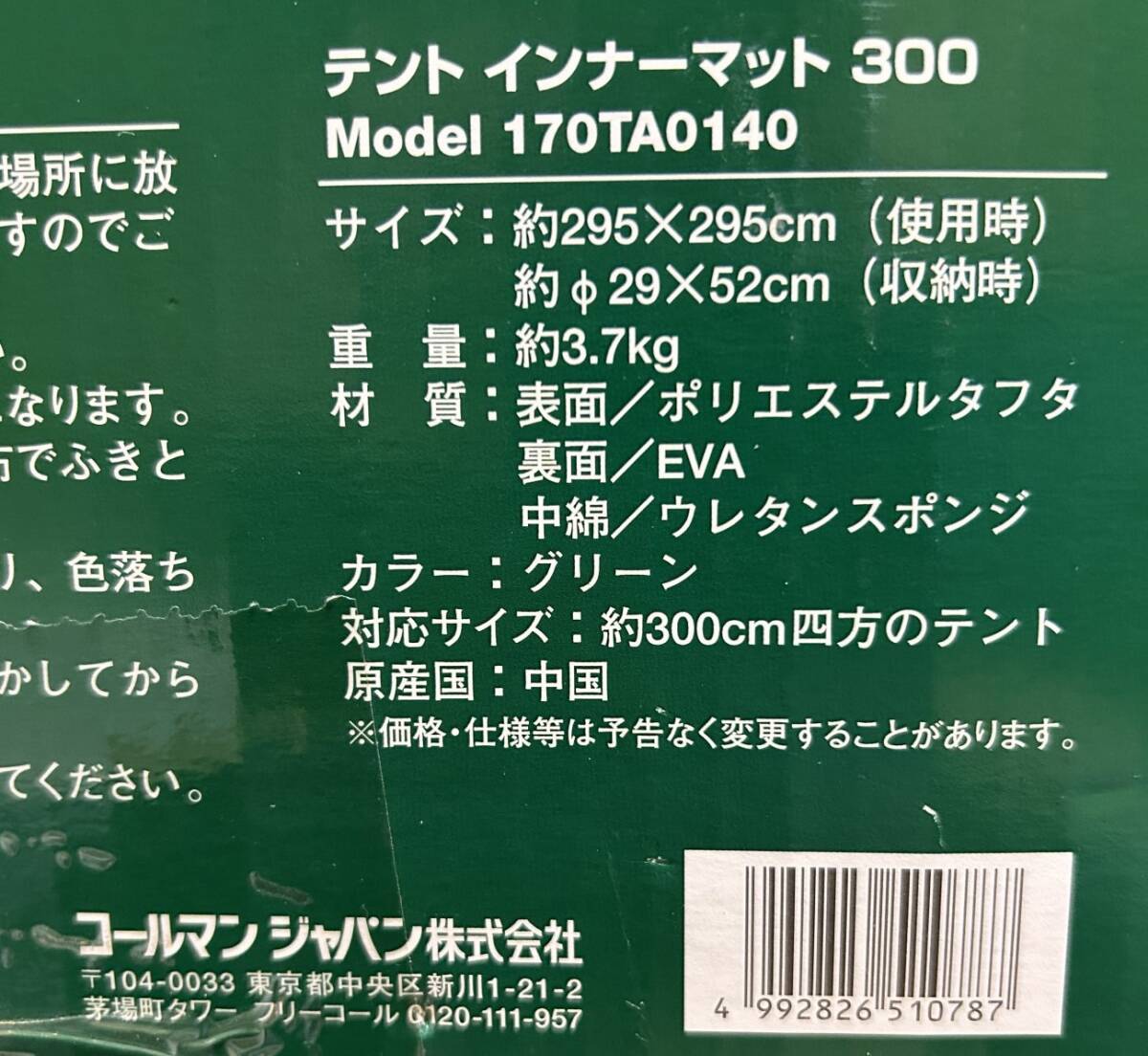 ・ コールマン テントインナーマット /300 の中古です。(300×300のテントに対応)