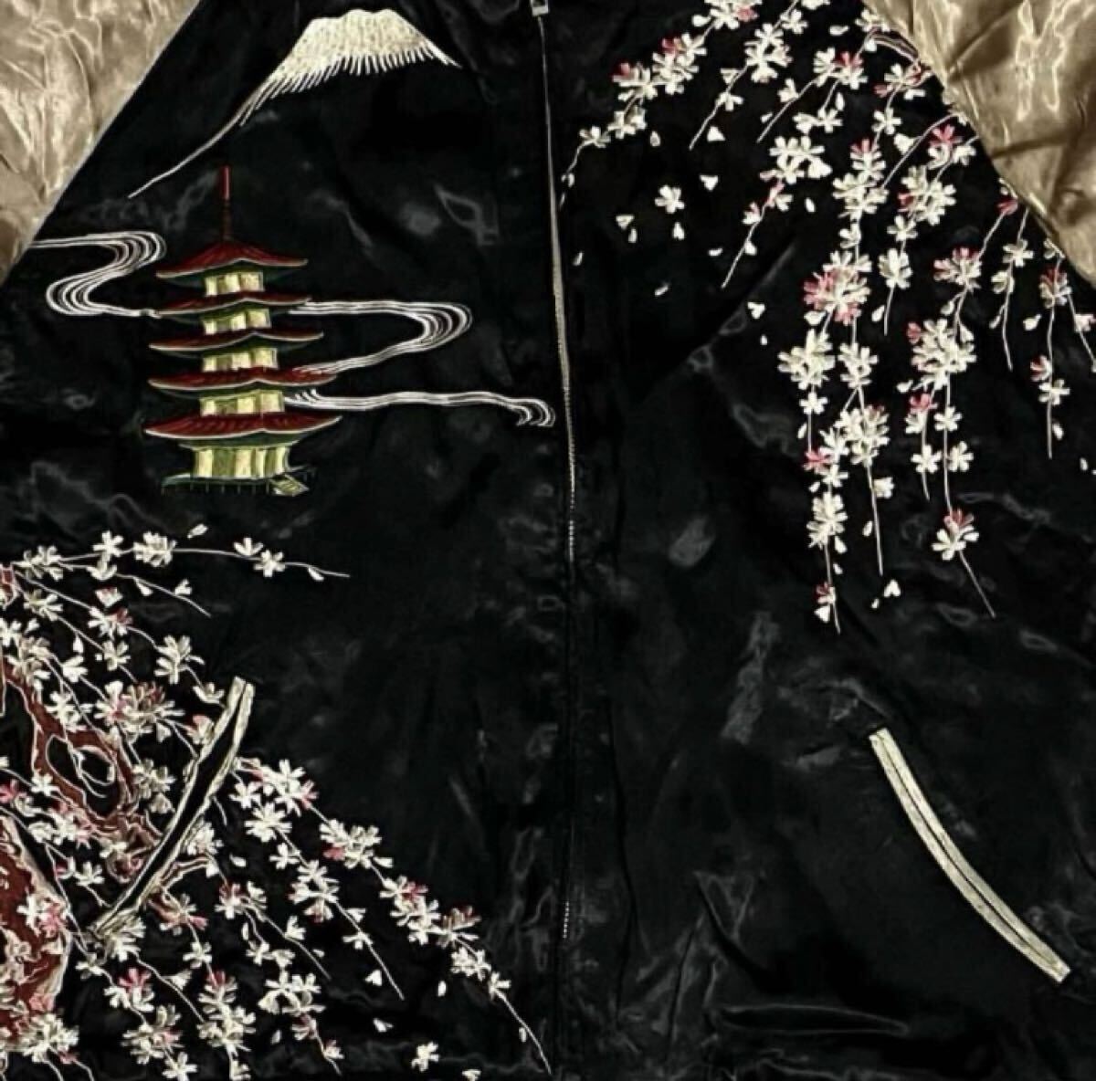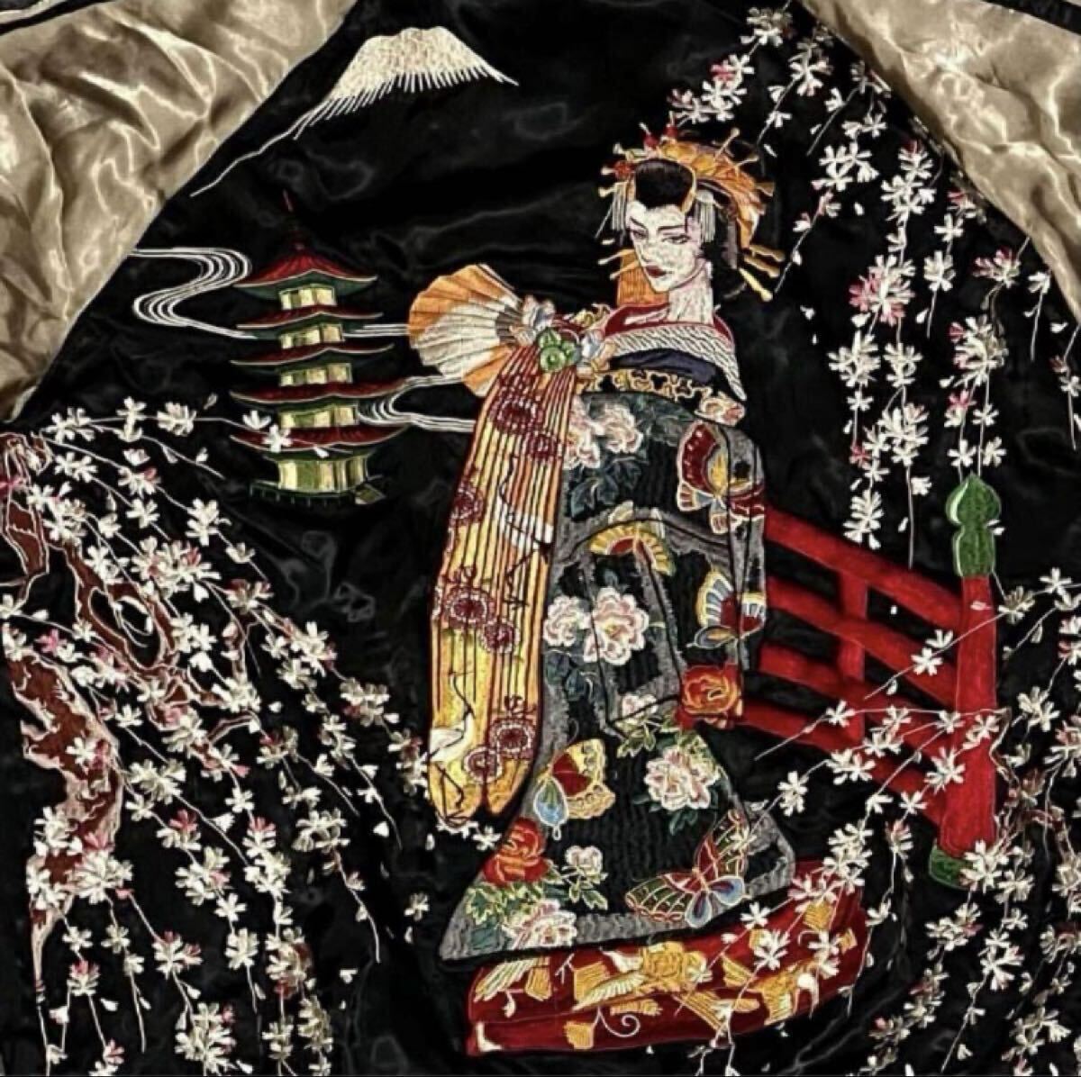 花魁や桜吹雪の刺繍が印象的で希少な商品です。