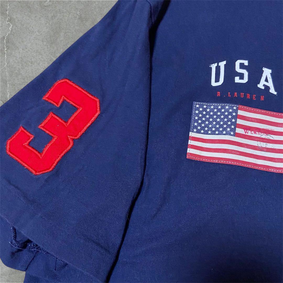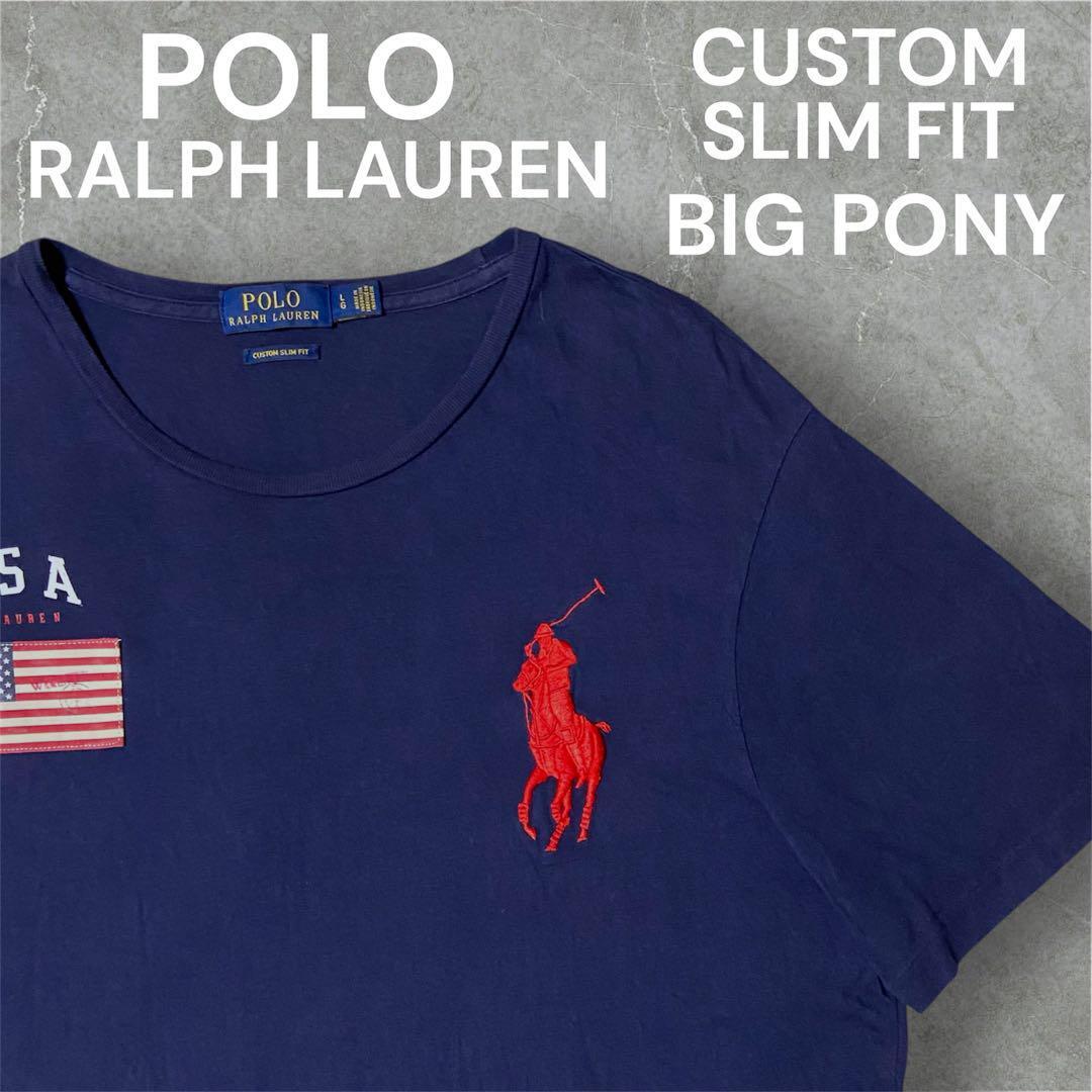 #Polo#Ralph#Lauren#CUSTOM#SLIM#FIT#BIG#PONY#ポロ#ラルフローレン#カスタム#スリム#フィット#ビッグ#ポニー#アメリカ国旗#3#L#Tシャツ#カットソー#半袖#ネイビー#コットン#綿#USA#メンズ#男性