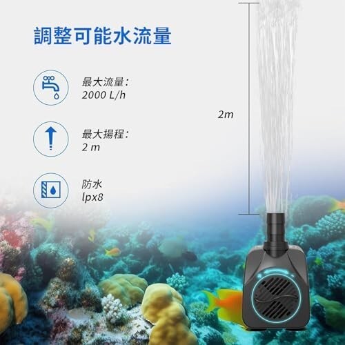 aninako 水中ポンプ 小型 ウォーターポンプ 2つのノズル 水流循環ポンプ 水 流量調整可能 110v 水 魚の水槽など 小型揚水ポンプ IP68 防水 ミニポンプ 水槽潜水ポンプ 水換えポンプ 電動 排水 静音設計 吐出量2000L/H 噴水2m 水耕栽培・水族館水換え・養殖場適用 (A 110v 2000L/h)