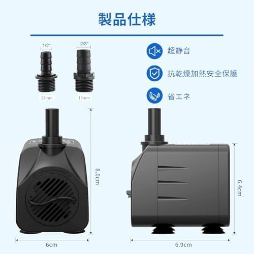 【製品パラメータ】入力電圧:AC 110 V出力:25 W揚程:2M;出水口直径:13mm&1
