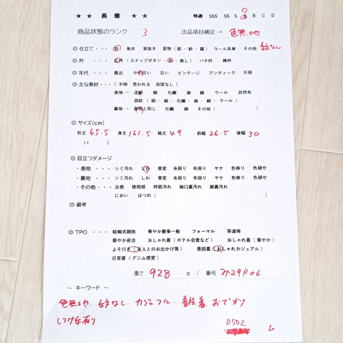 詳しくは写真2枚目の検品用紙の画像をご確認下さい。