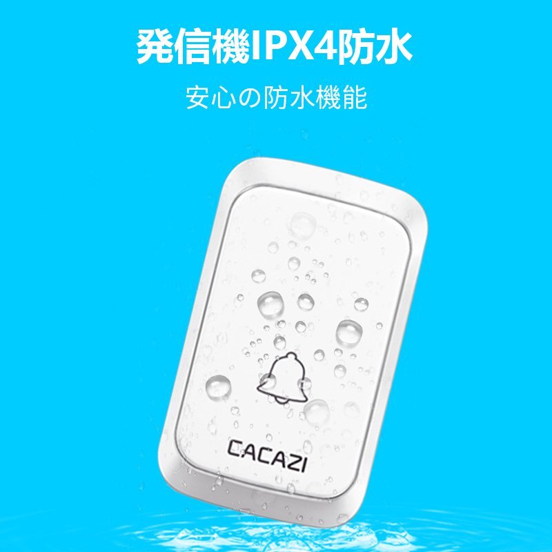 IP44防水:こちらの呼び出しチャイムの押しボタン送信機は防滴仕様(防水規格IP44相当)なので、防水・防塵性能が優れており、屋外や風呂場でも使用でき、雨の日でも心配ありません。ただ水に浸けて使用することや直接雨がかかる場所のご使用はお避けください。