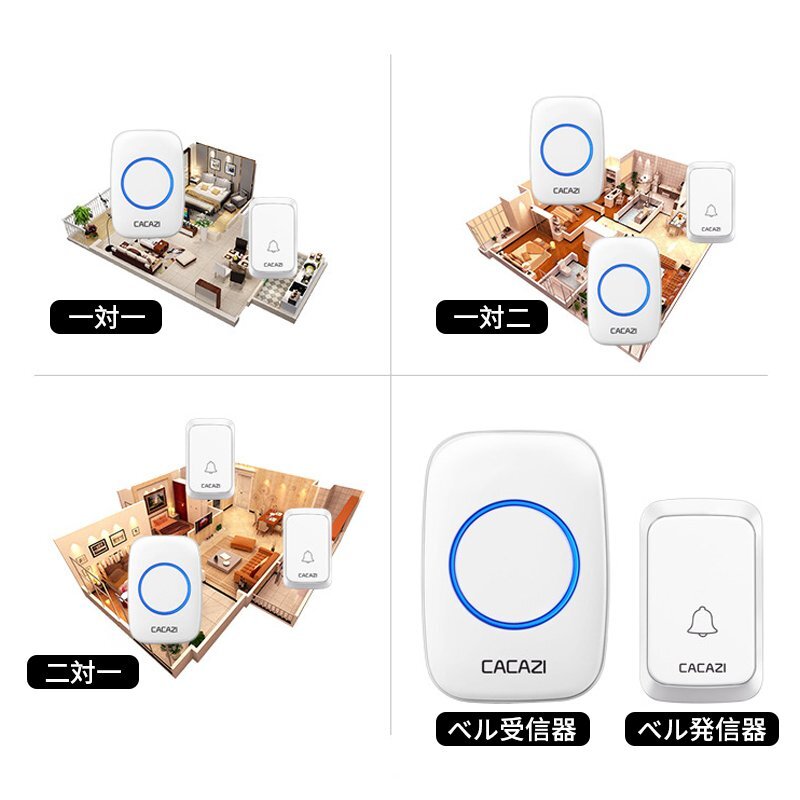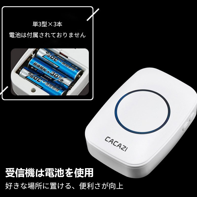 玄関 介護 無線 防水 おしゃれ 子供 交換呼び出しチャイム 無線呼び鈴 無線チャイム 電池式 受信機 工事不要 おしゃれで便利なワイヤレスチャイム