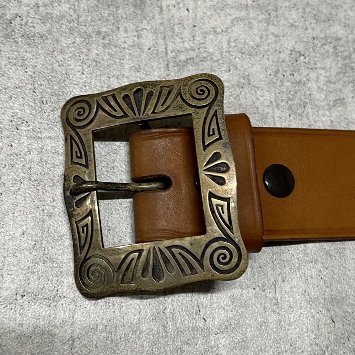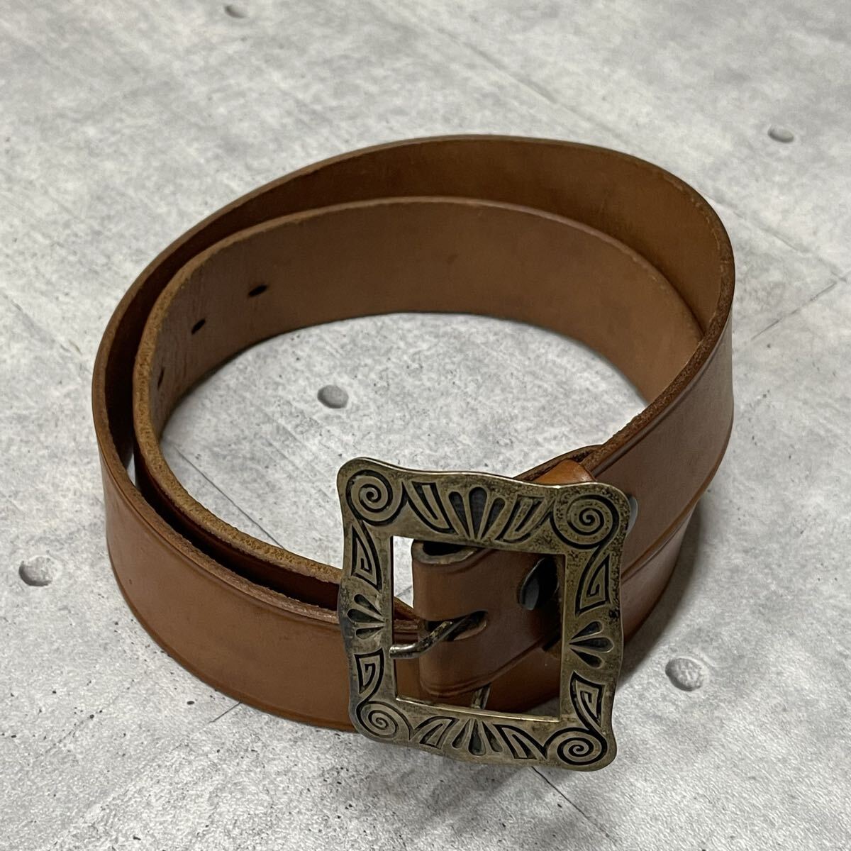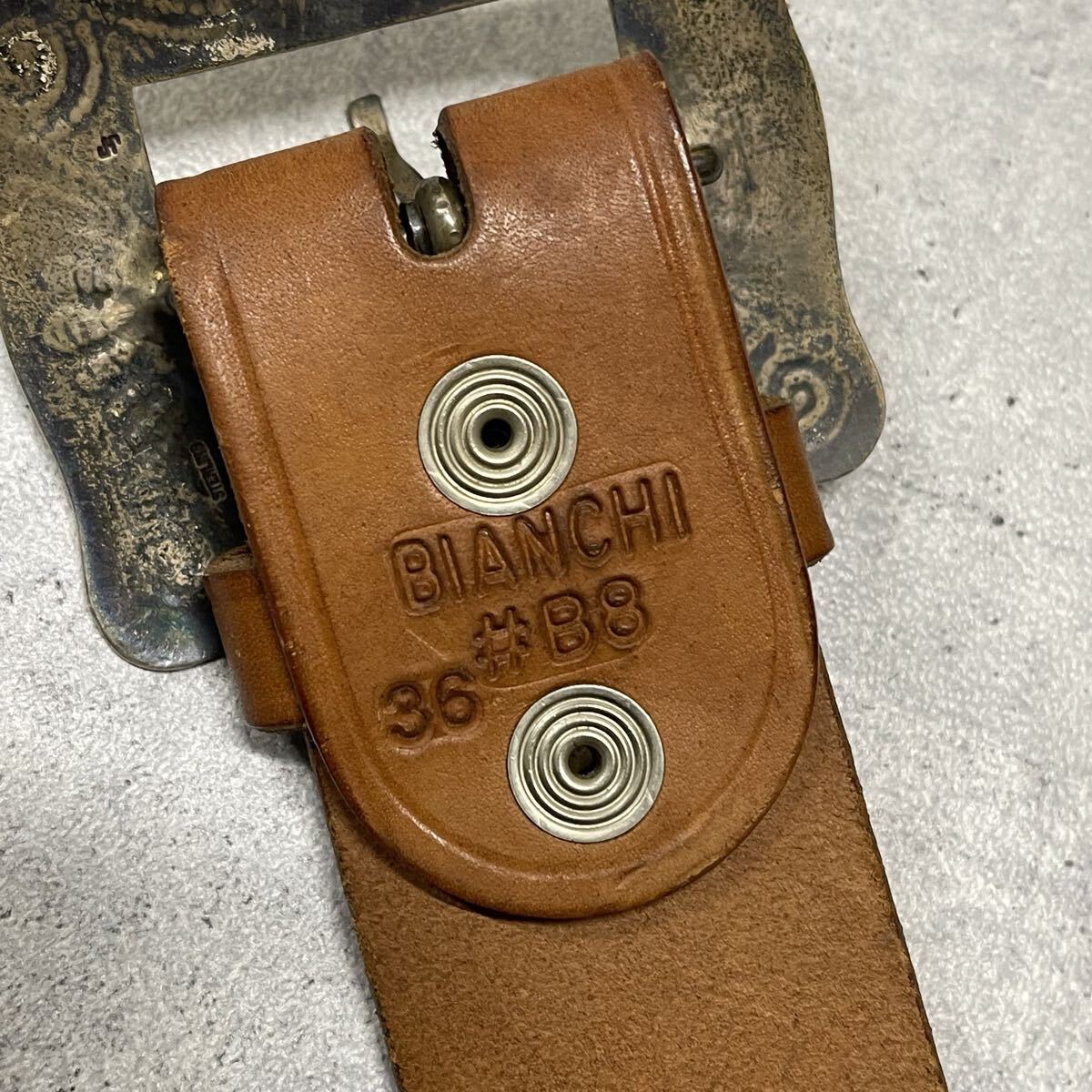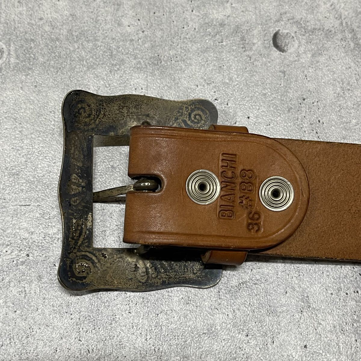 BIANCHI レザーベルト #B8 ギャリソン デザインバックル ビアンキ   真鍮製 ブラス 幅広 厚手 革ベルト ミリタリー サバゲー 柳11647