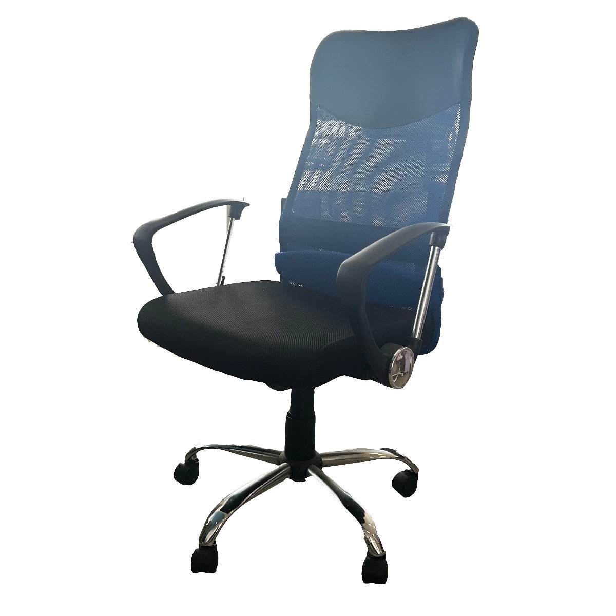 中古●タンスのゲン●デスクチェア H-935L-2R ブルー/ブラック ひじ掛け キャスター付き 幅66奥行66高さ107-114㎝ 札幌 0904