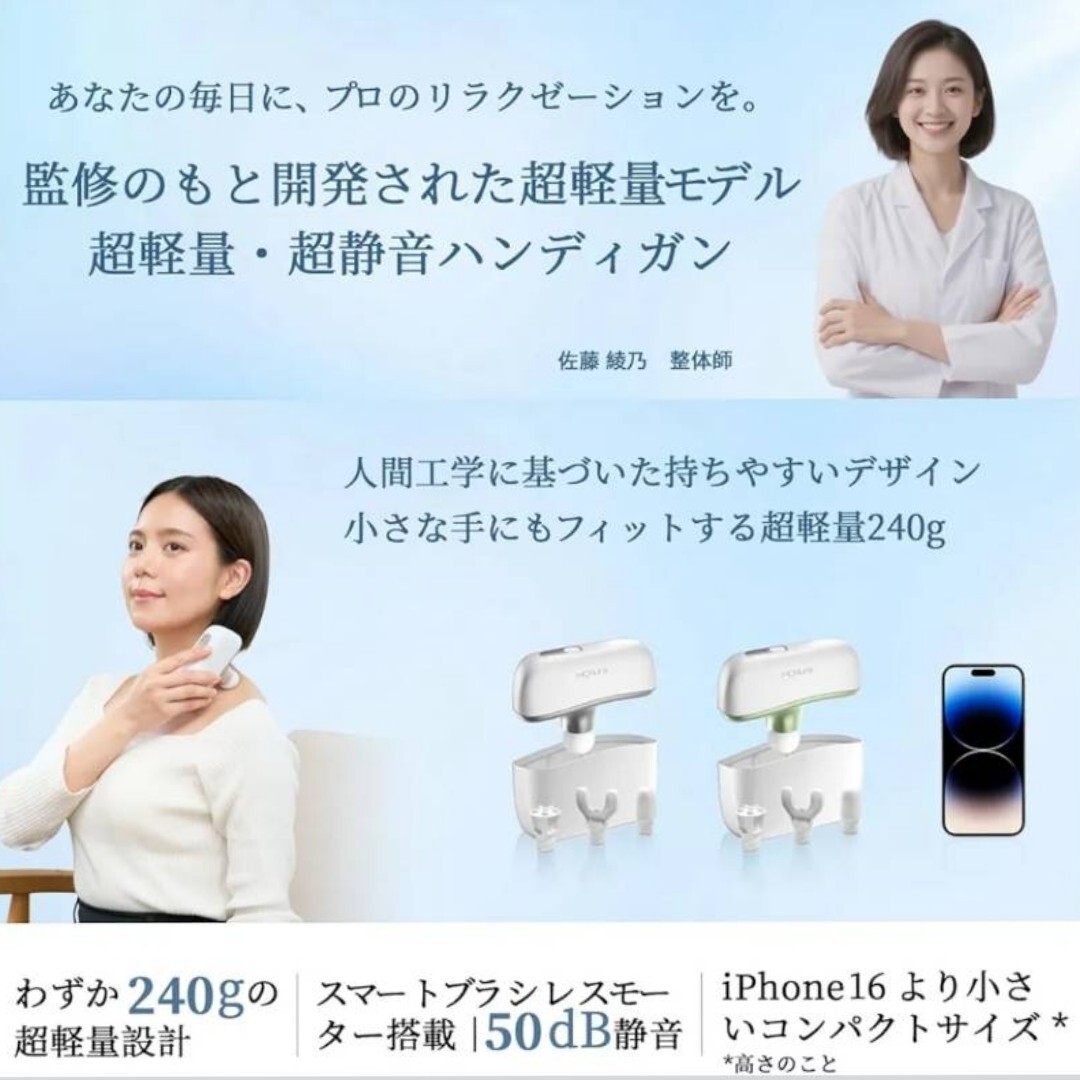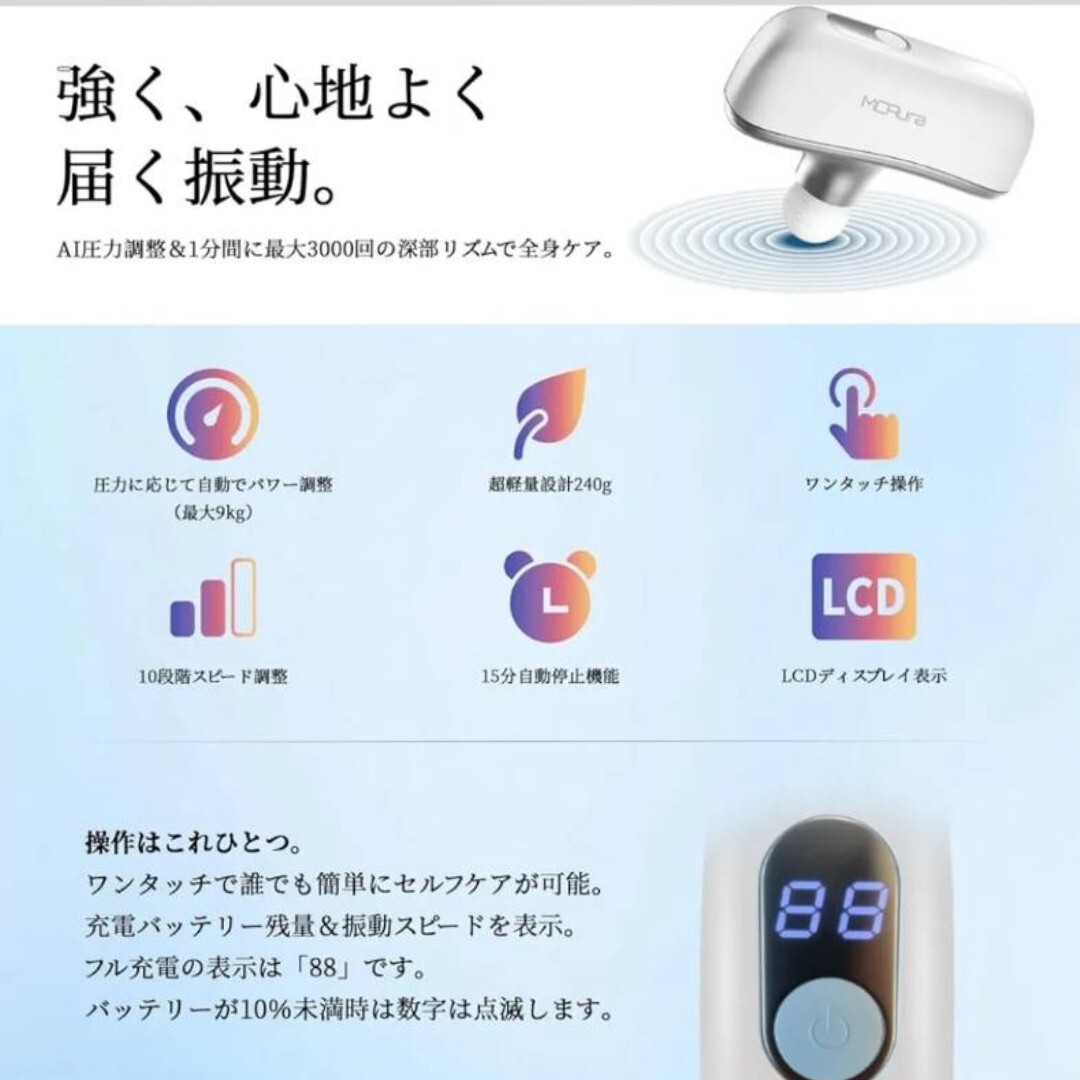 首、肩、腰、脚など、気になる部位にやさしく刺激を届けます。6mmの振動幅が深層筋まで届き、血行促進と疲労回復を効果的にサポートします。フィットネスやゴルフ後のケアにも最適で、毎日の健康維持に役立つ筋膜リリースガンです。