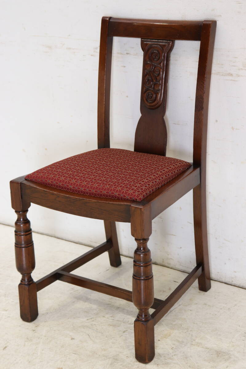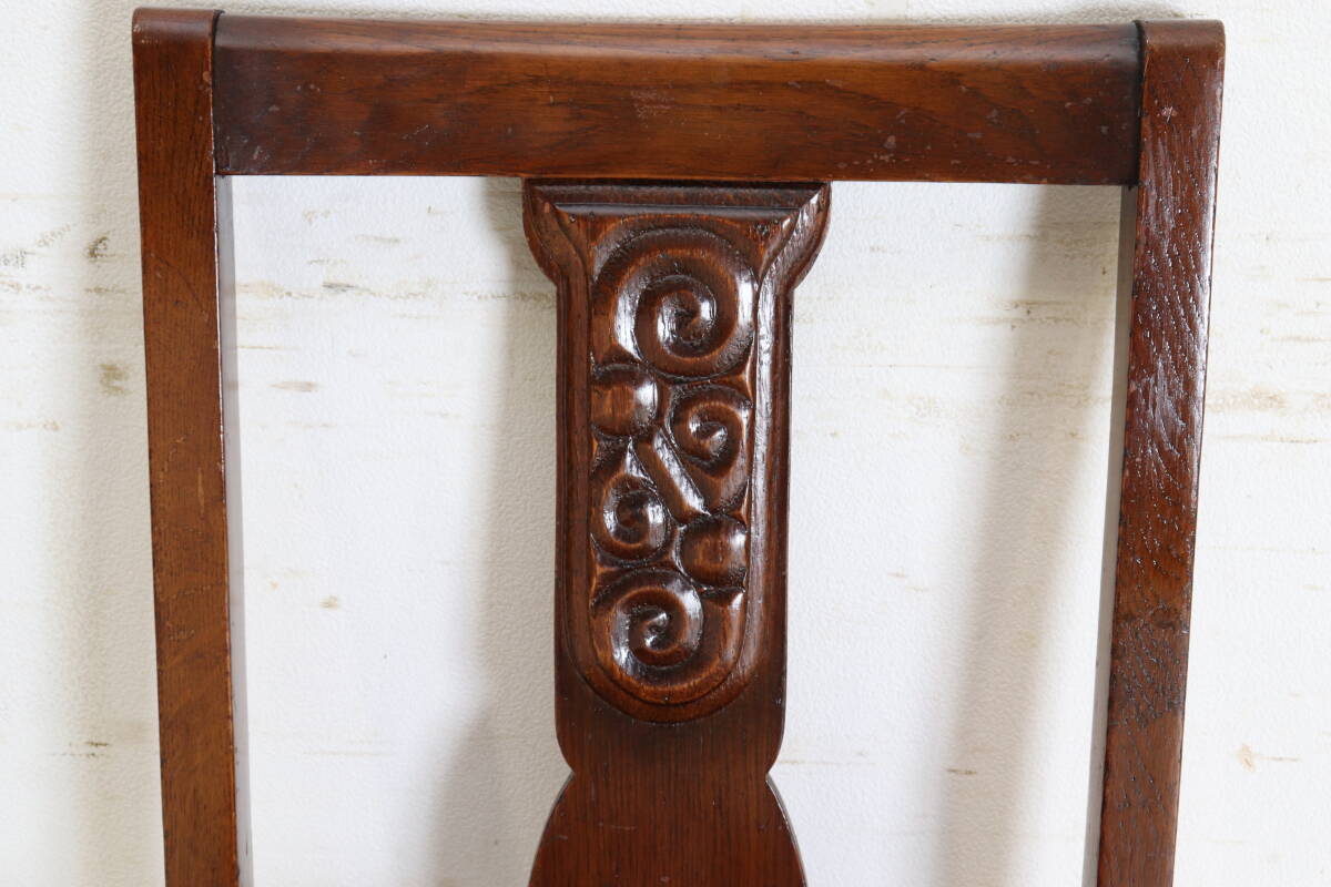 アンティークならではの重厚なオーク材とクラシカルな彫刻が魅力のチェア。