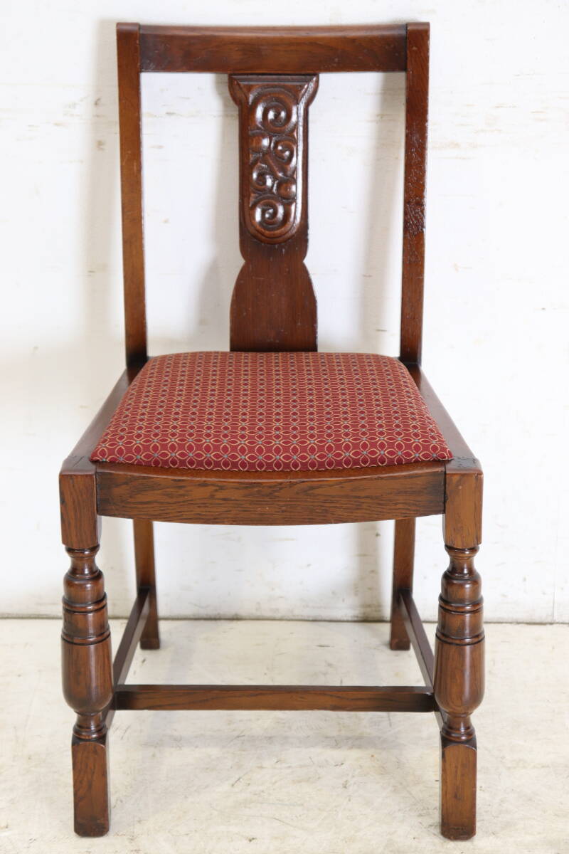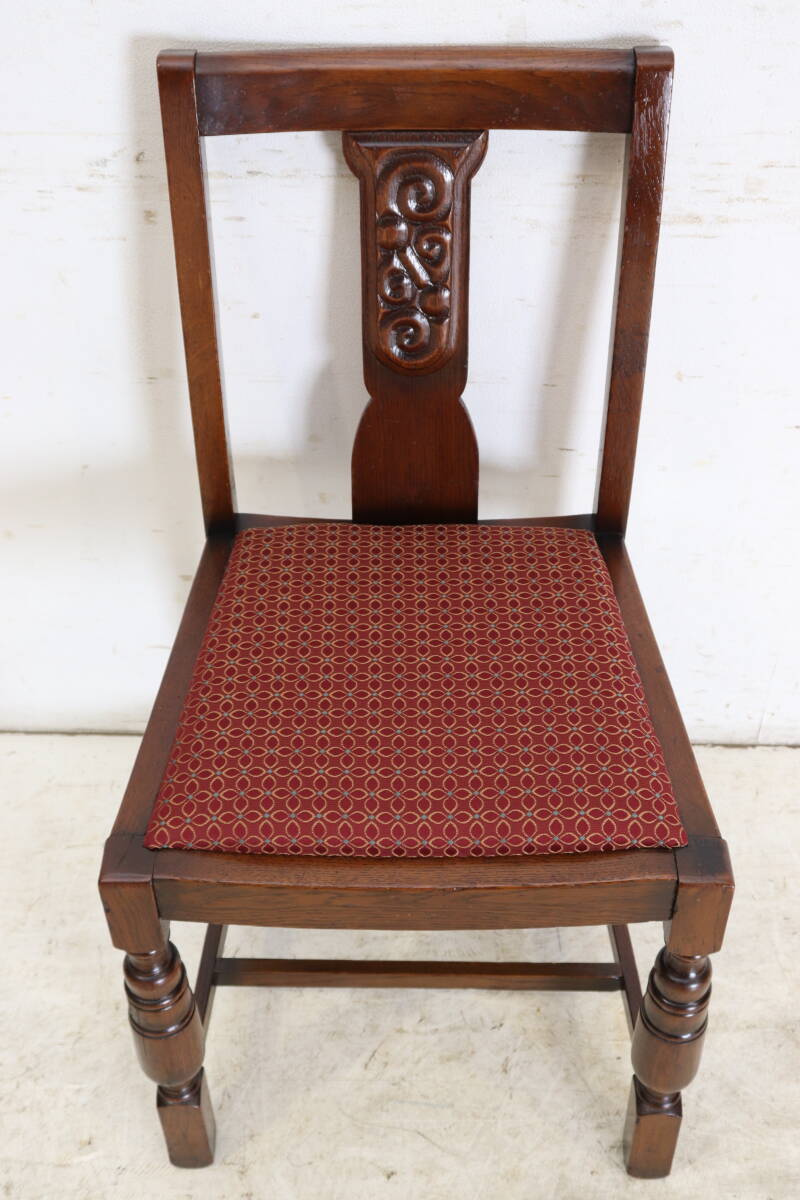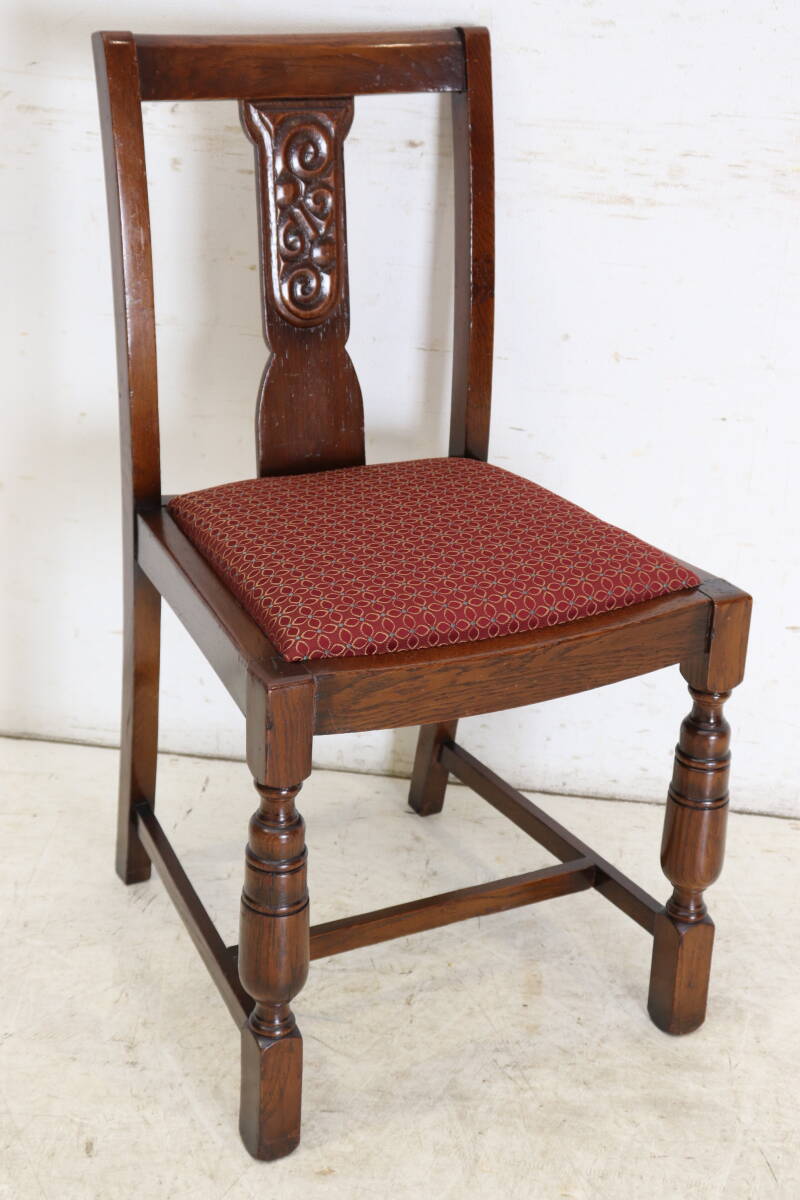 1940年代イギリス製 アンティーク オーク ダイニングチェア 書斎用椅子 クラシカル装飾 張替済座面 ヴィンテージチェア (C)
