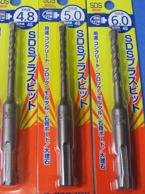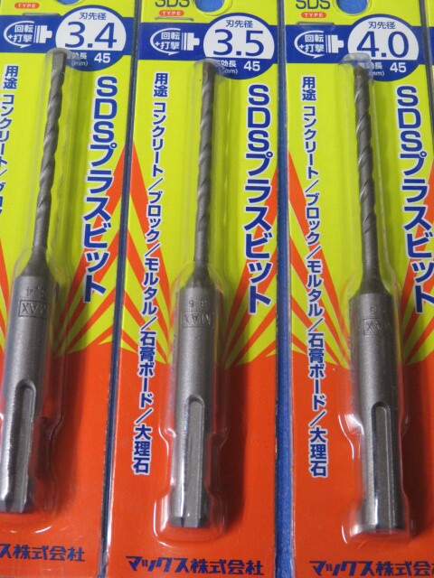 (A)MAX SDSプラスビット 3.4mm,3.5mm,4.0mm,4.8mm,5.0mm,6.0mm×110mm 6本組 送180 コンクリートドリル ブロック モルタル 残2
