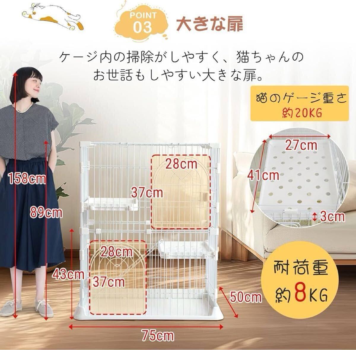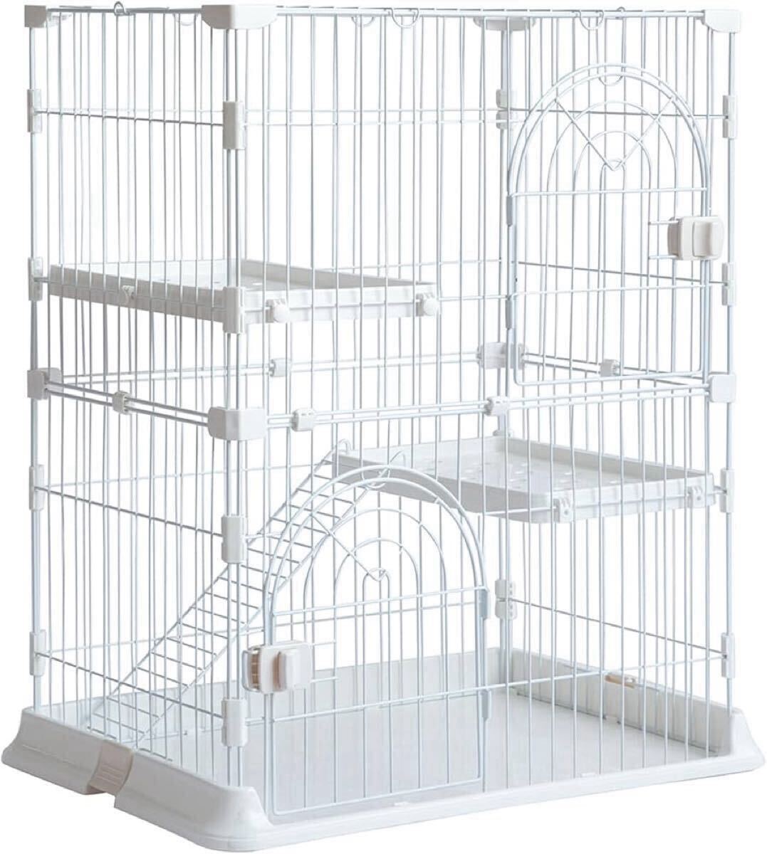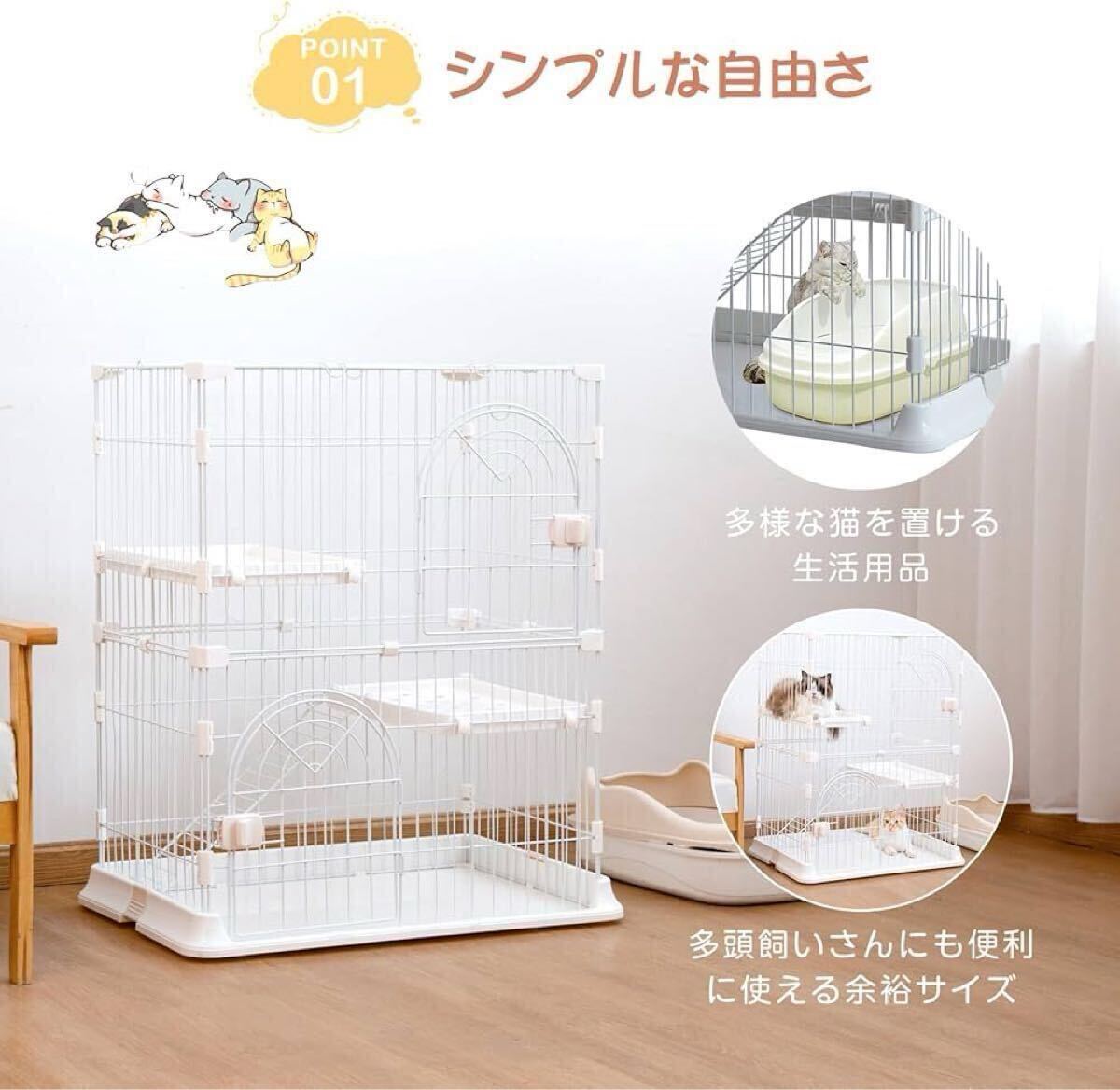 猫ケージ 大型 折りたたみ キャットケージ ワイド扉 多頭飼い 脱走防止 猫ハウス 1段 2段 組み替え自由 おしゃれ ホワイト