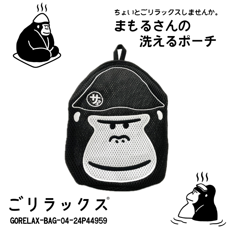 送料無料 ごリラックス まもるさんの洗えるポーチ ブラック◇24P44959◇新品 サ活 バッグ 入浴バッグ サウナ 銭湯 GORELAX ゴリラックス Z2