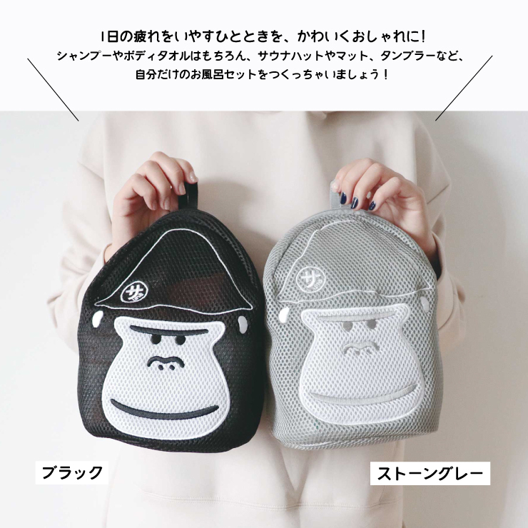とのい系ブランド「ごリラックス」からまもるさんの顔をデザインにしたポーチが登場!お風呂セットをひとまとめにできるのはもちろん、乾燥の早いメッシュ生地で丸ごと洗えて清潔に!サウナ・銭湯・温泉でマイシャンプーやマイボディソープを入れて、自分だけの完璧なお風呂&サウナセットを作っちゃいましょう!
