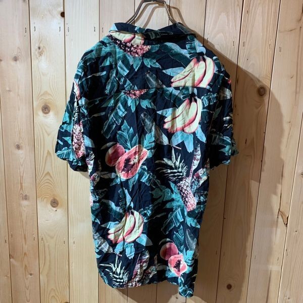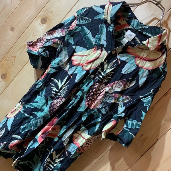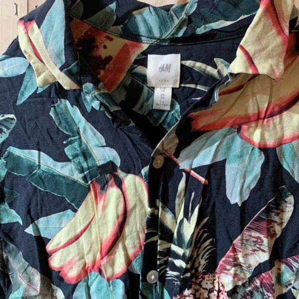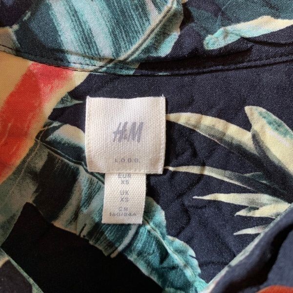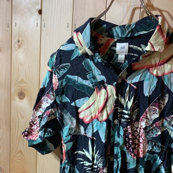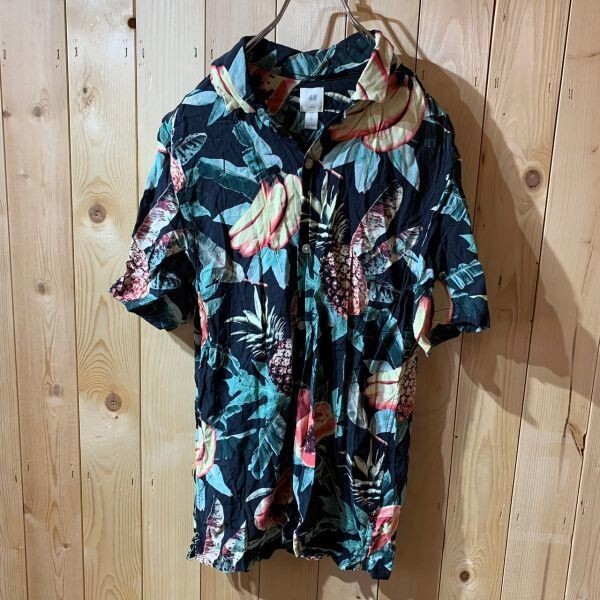 [KWT3216] H&M 半袖シャツ メンズ ブラック花柄 XS ポス