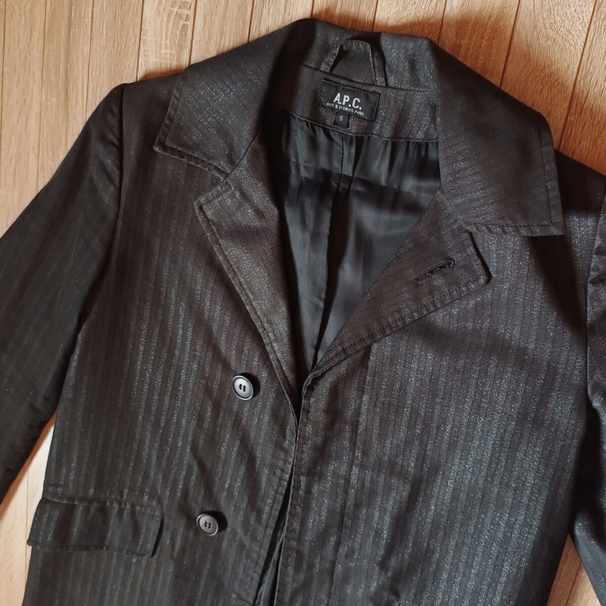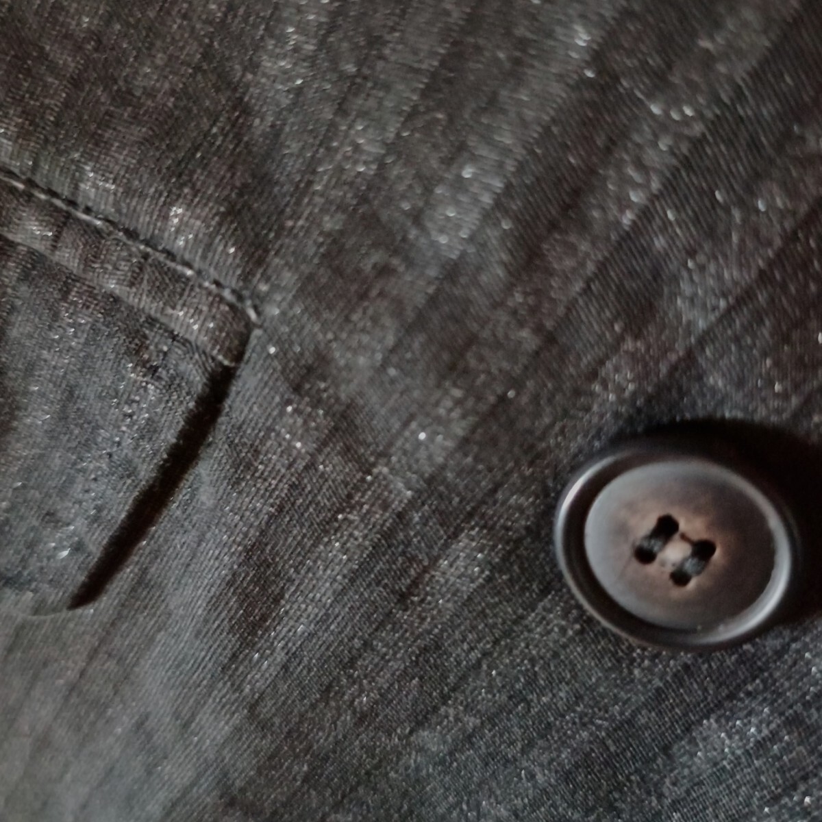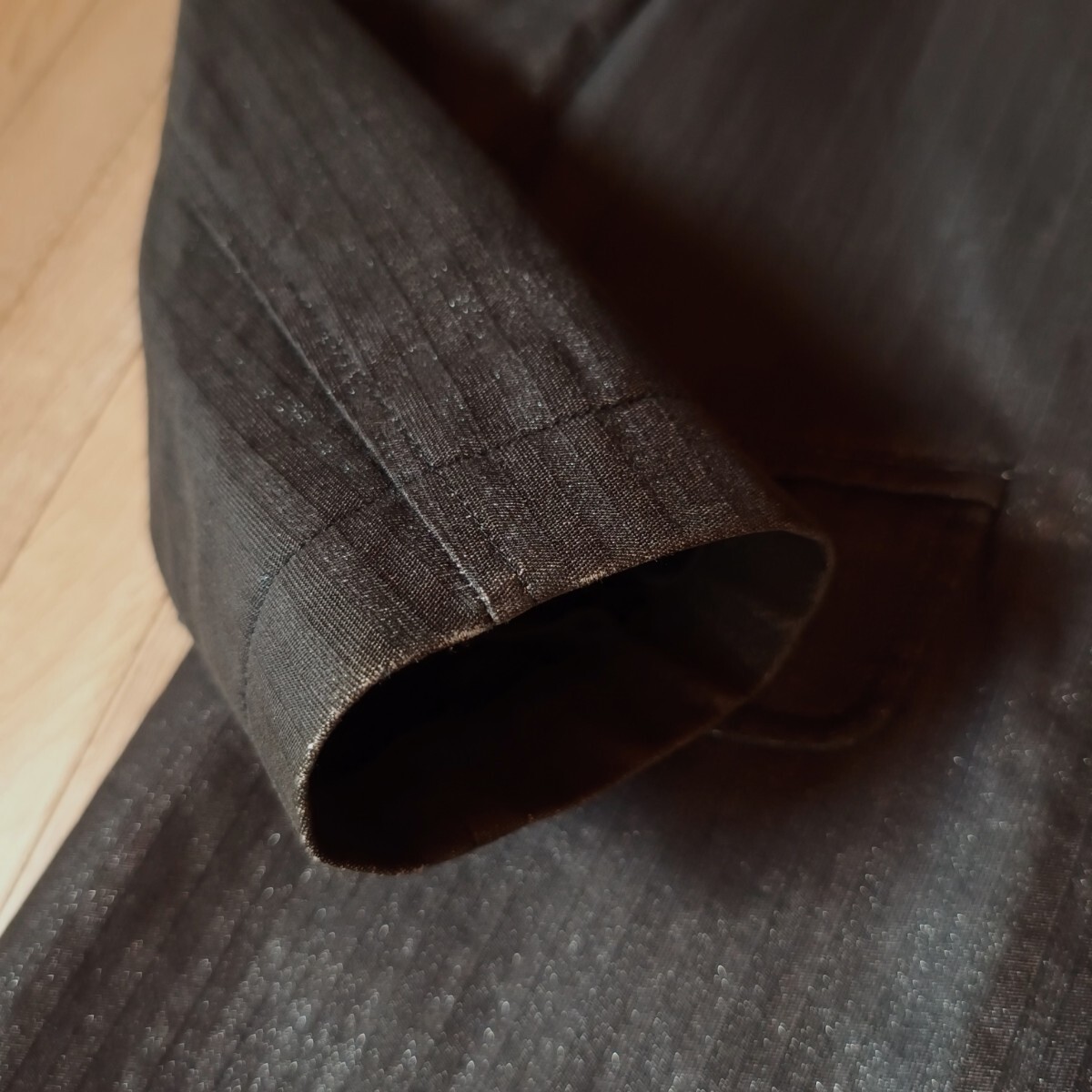 黒とチャコールグレーの細かいストライプで遠目に見ると墨黒のような色味です。