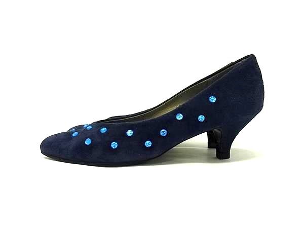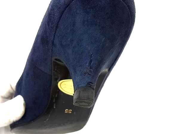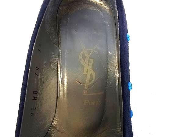 YVESSAINTLAURENT イヴサンローラン スエード ビーズ ヒール パンプス 35 (約22cm) シューズ 靴 レディース ネイビー系 DH8155