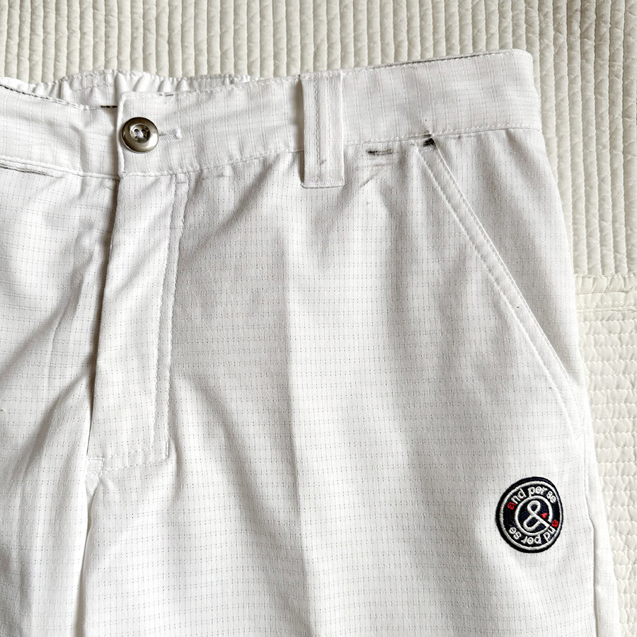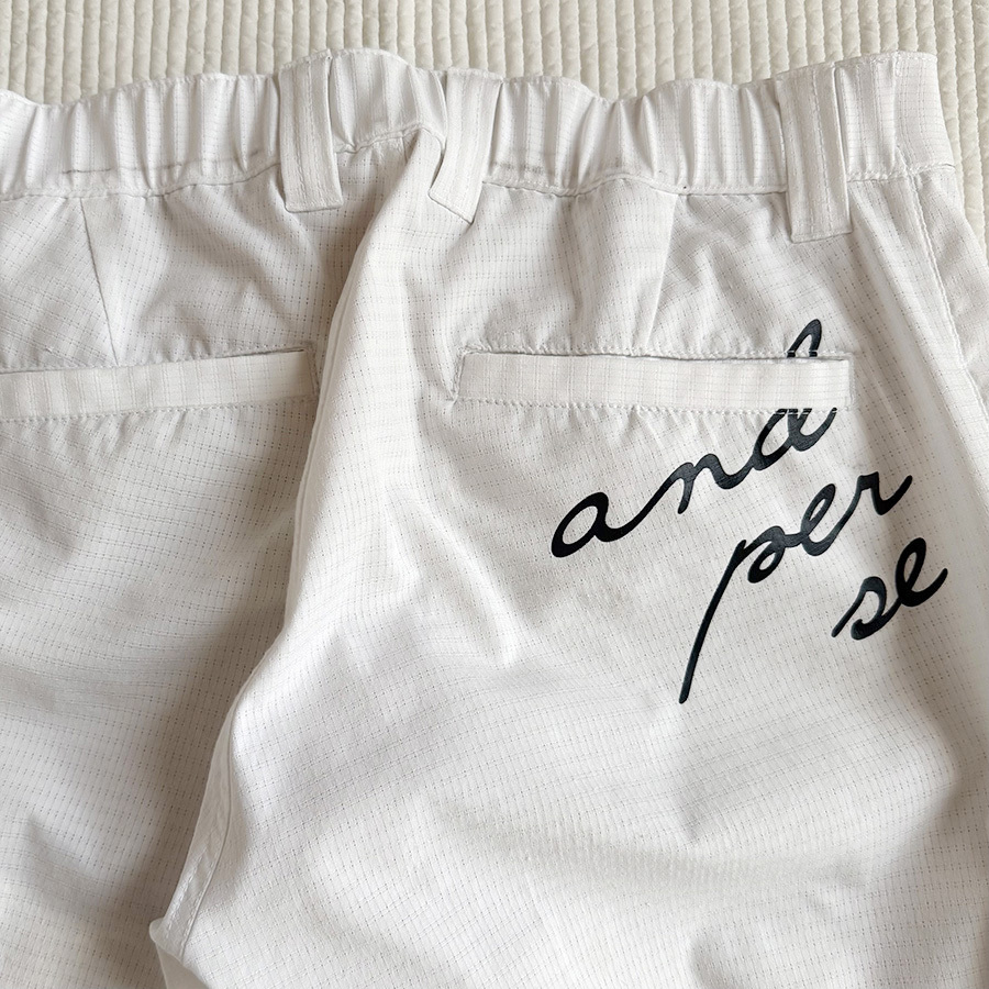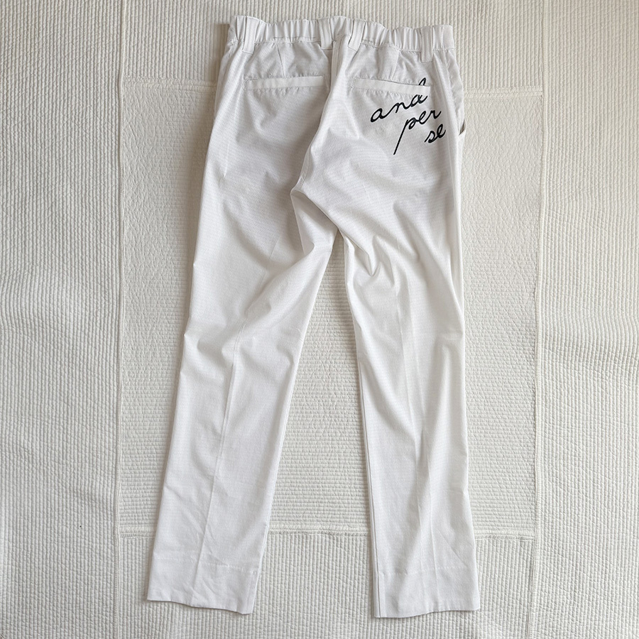 USED★and per se アンパスィ メンズ ゴルフウェア ロングパンツ 丸ロゴワッペン [L・ホワイト]