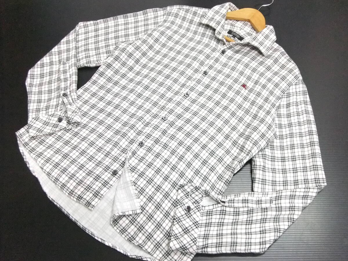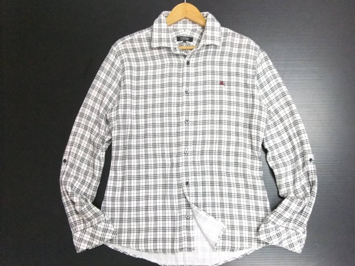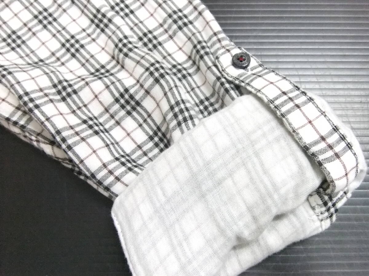 ■BURBERRY BLACK LABEL■長袖シャツ ガーゼシャツ サイズ2 白 ノバチェック柄 襟ワイヤー バーバリーブラックレーベル